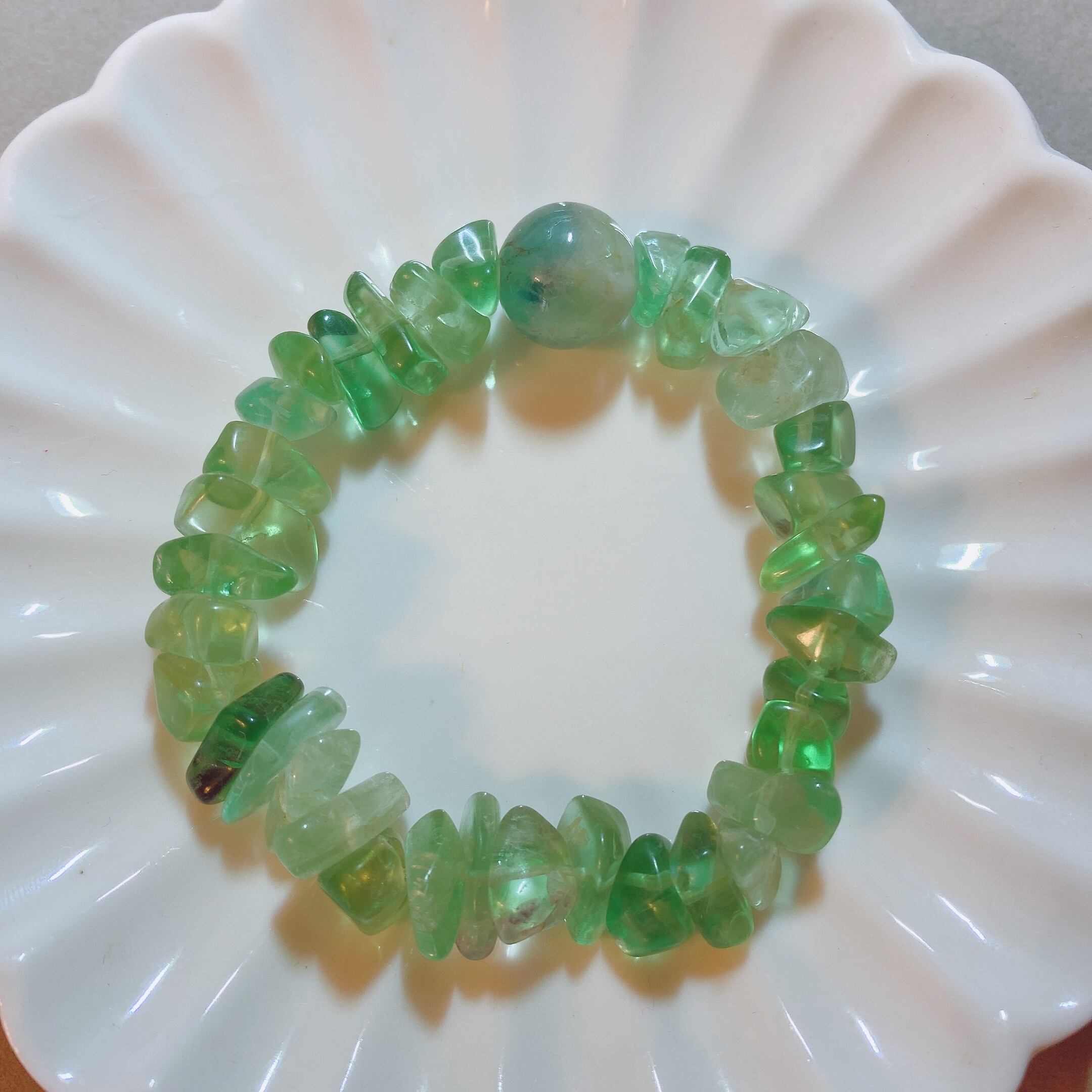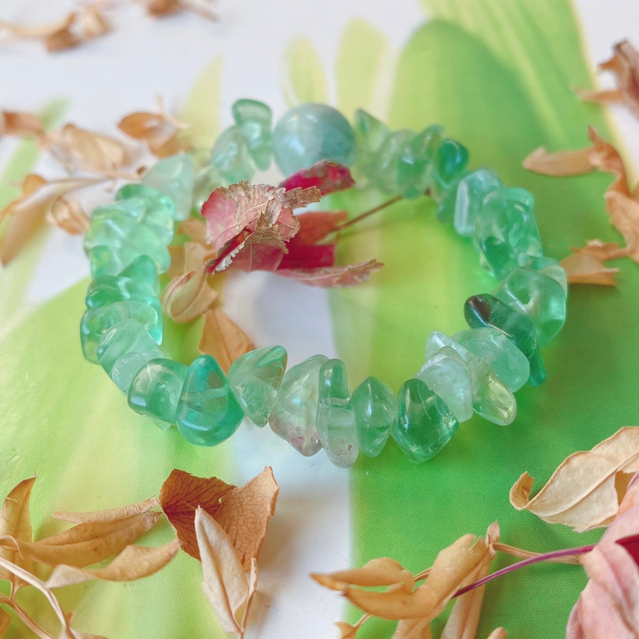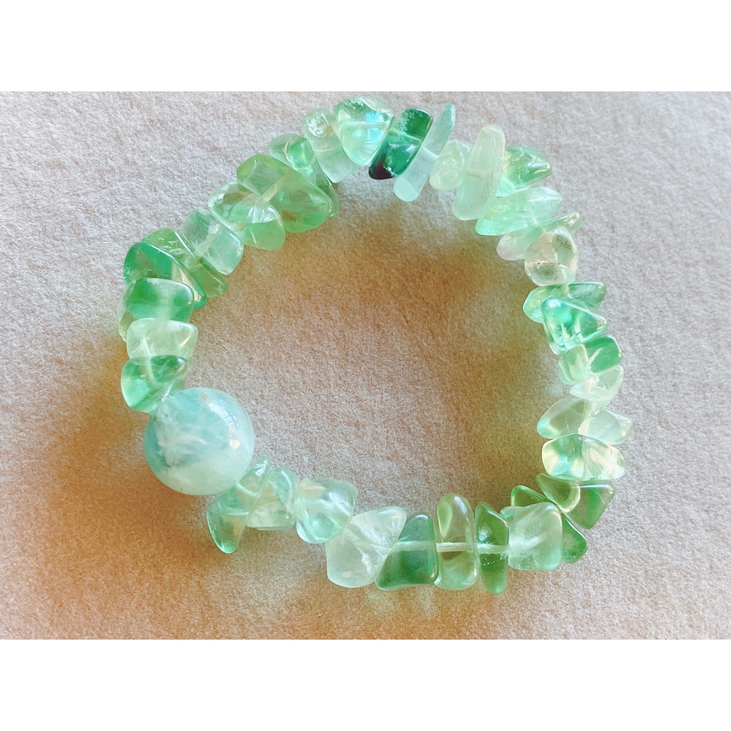 17cm【解き放つ - Release -】サイズ変更OK・フェザーインフローライト・グリーンフローライトタンブル・天然石・パワーストーン・ヒーリングストーン・ブレスレット・浄化済み