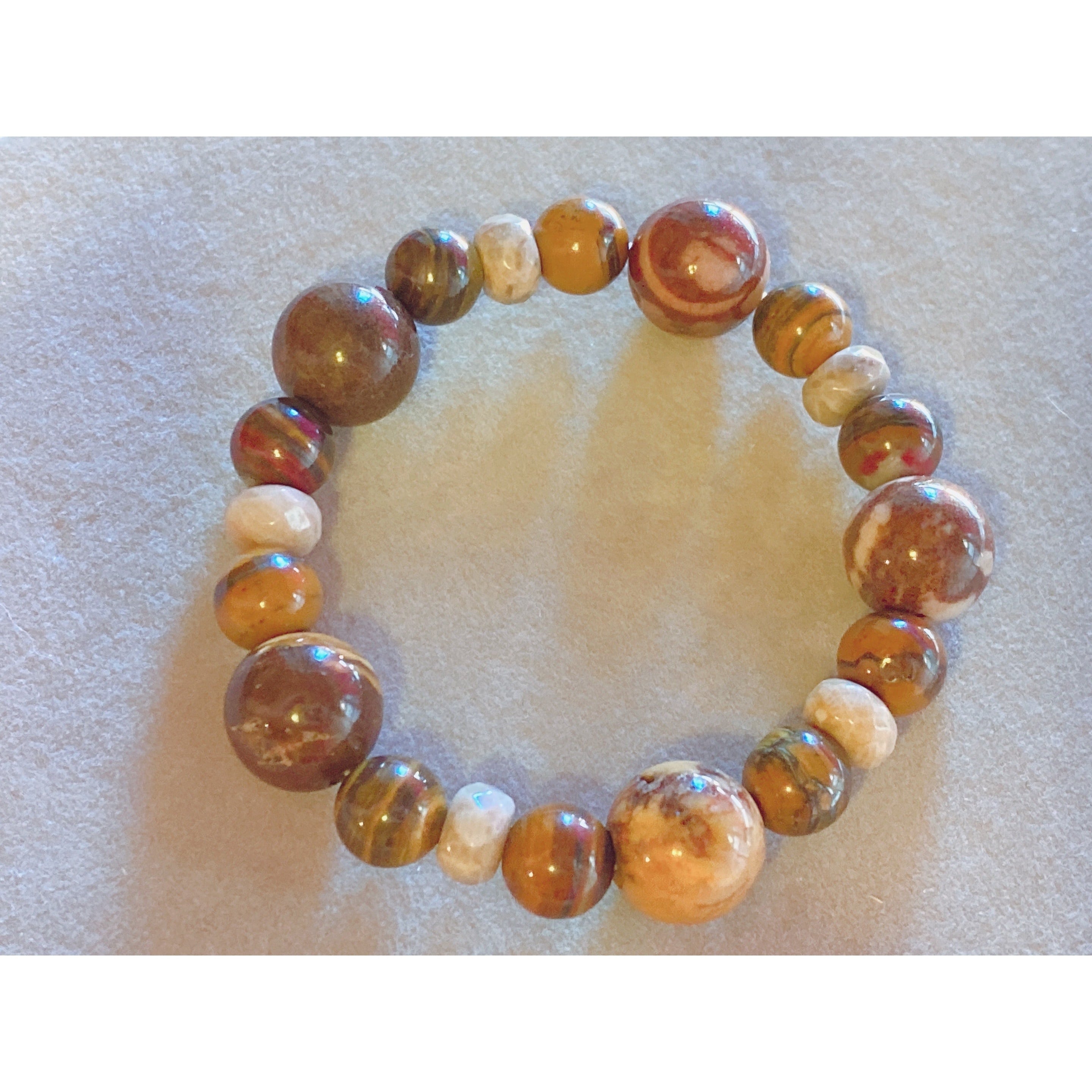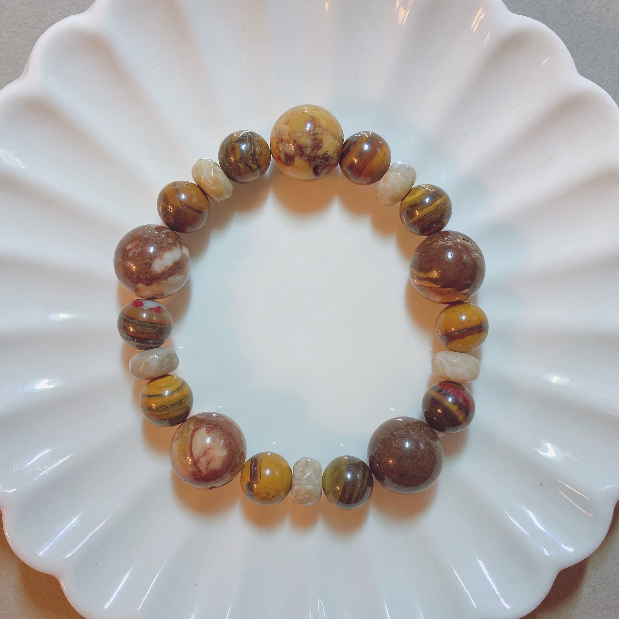 14cm【依存を手放す】3月誕生石・フォシルコーラル・珊瑚・ブラウンゼブラジャスパー・アイアンゼブラジャスパー・瑪瑙・天然石・パワーストーン・ヒーリング・ブレスレット・浄化済み