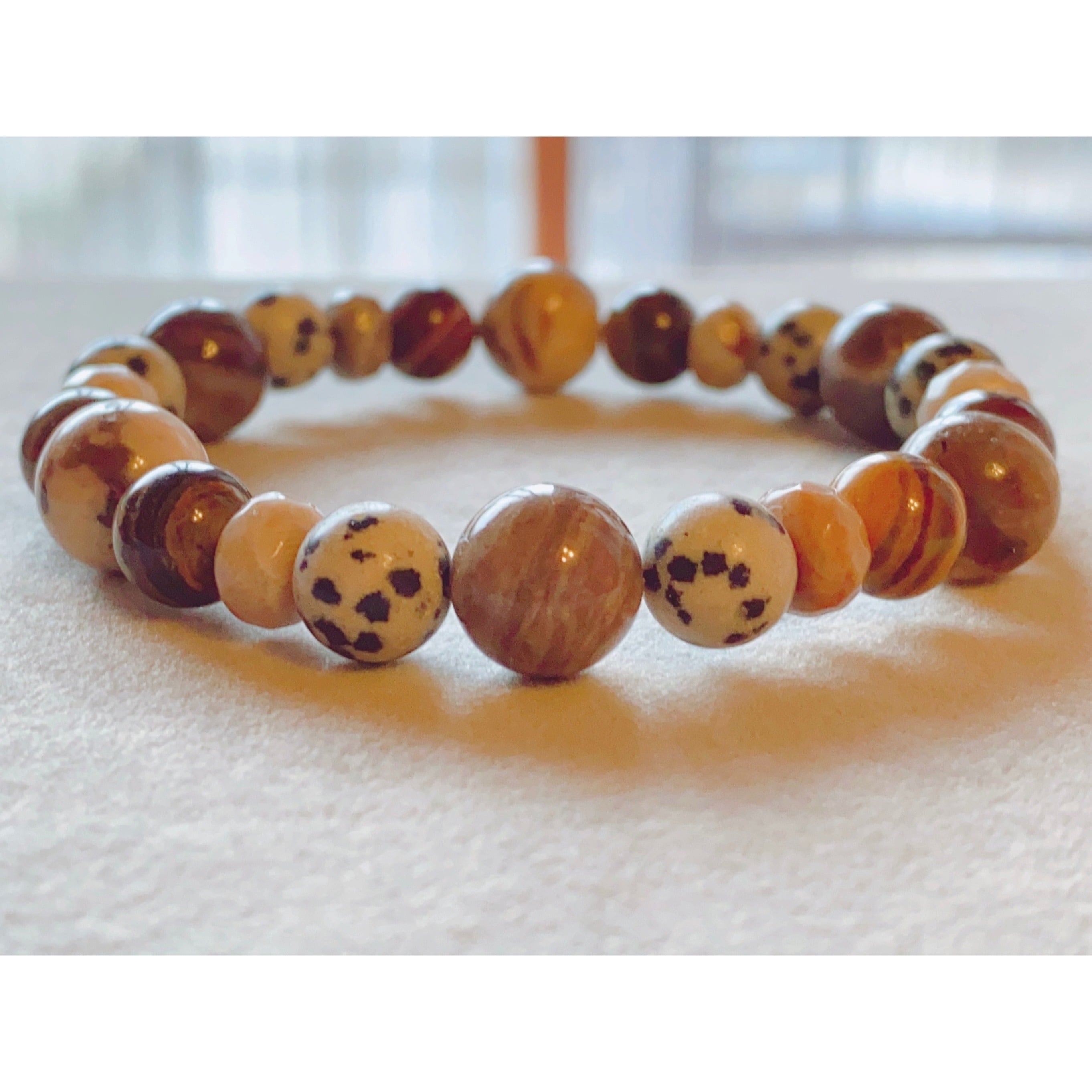大地を象徴する石であるジャスパーは全体的に非常に安定感の強い石で、持つ人にとって無意識レベルで自然と繋がる為のサポートとなる