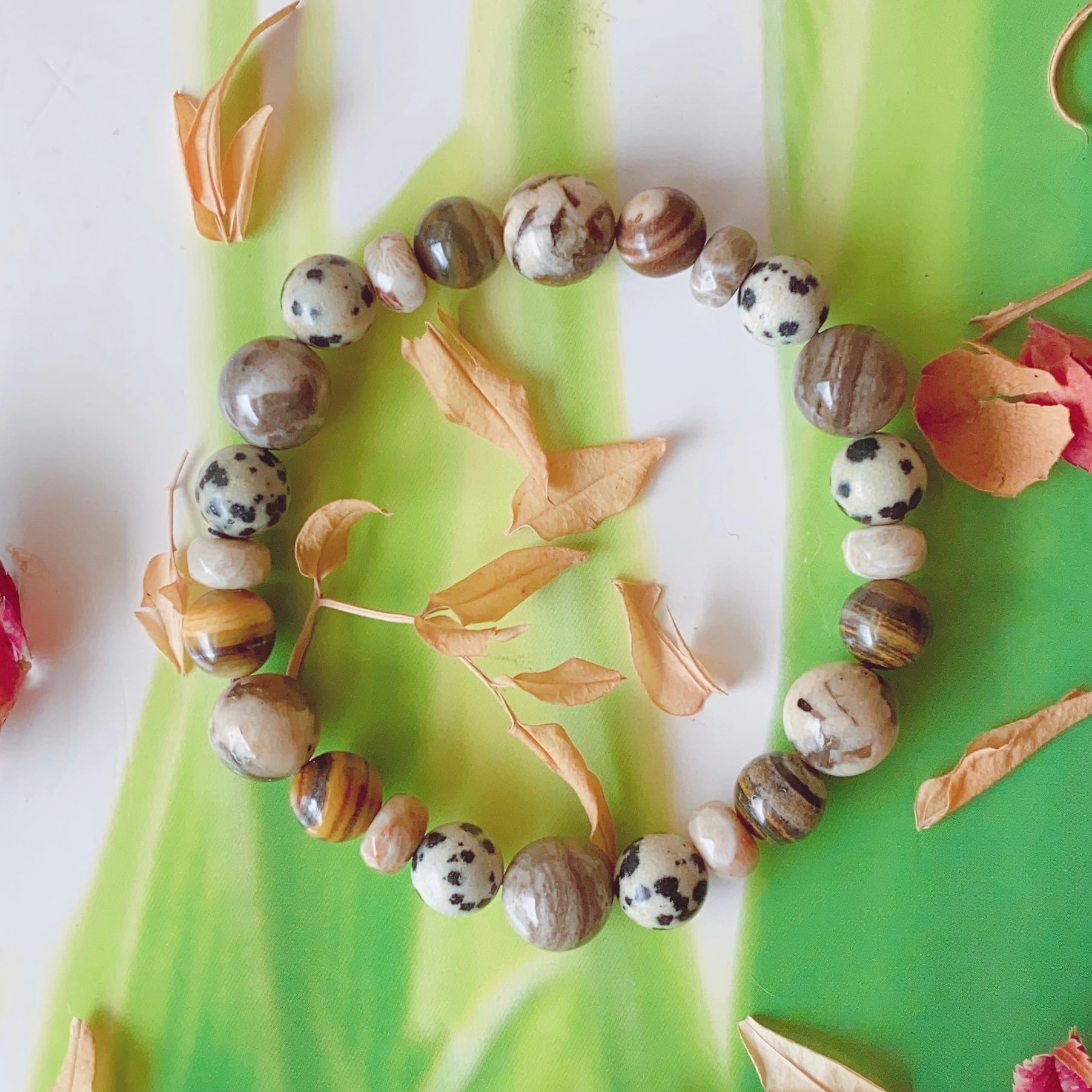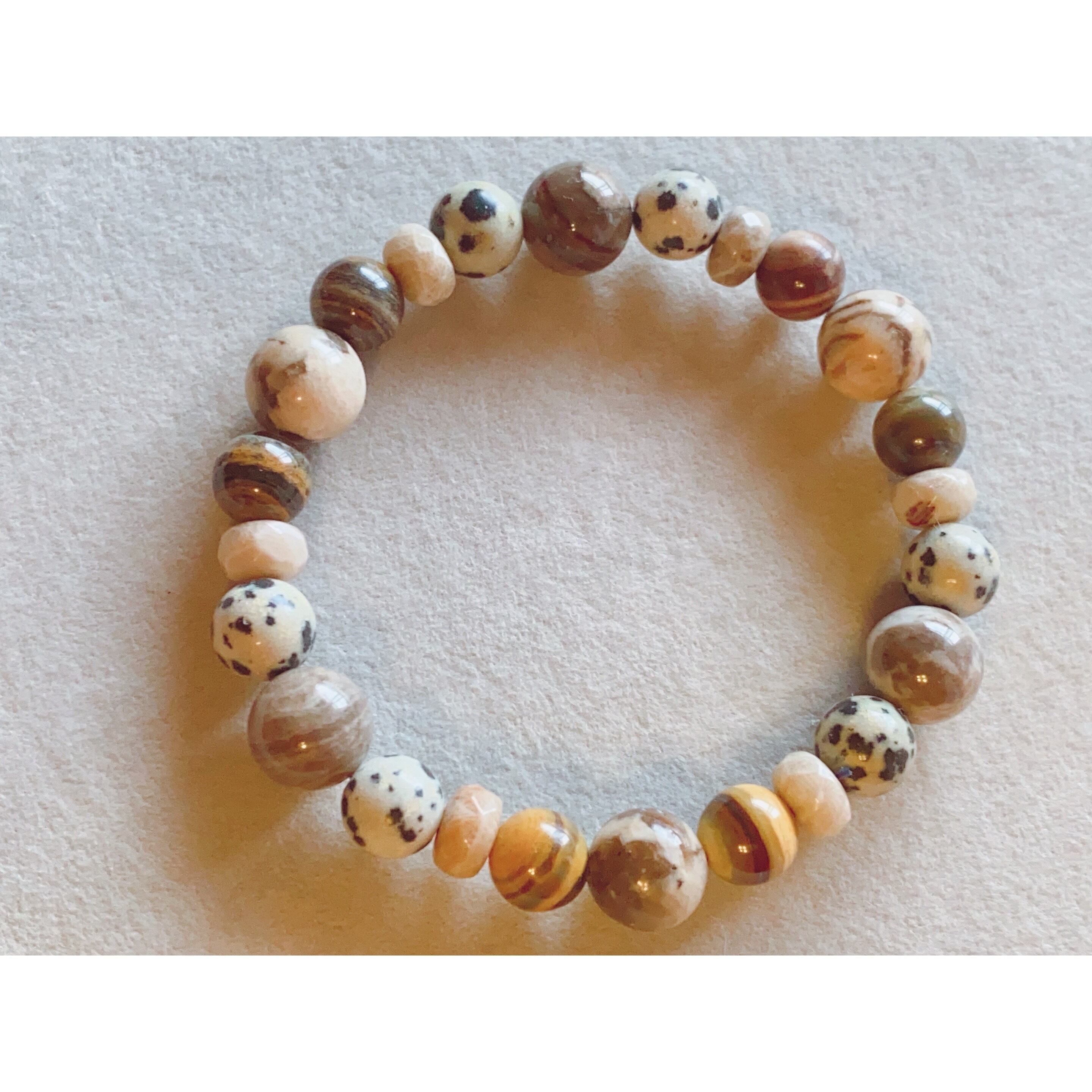 17cm【力強く!!】3月誕生石・フォシルコーラル・シルバーリーフジャスパー・グラフィックグラナイト・アイアンゼブラジャスパー・天然石・パワーストーン・ヒーリングストーン・ブレスレット・浄化済み
