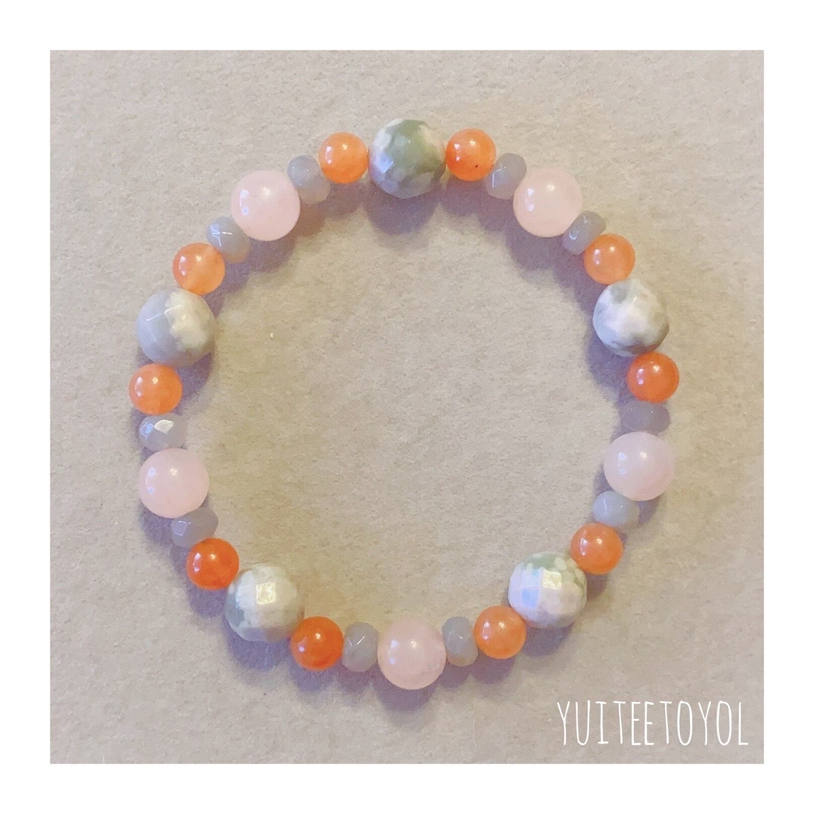 17cm【感情の安定剤♡】5月誕生石・ピンクアベンチュリン・オレンジアベンチュリン・ラピスネバダ・グレーオニキス・天然石・パワーストーン・ヒーリングストーン・ブレスレット・曼荼羅・浄化済み