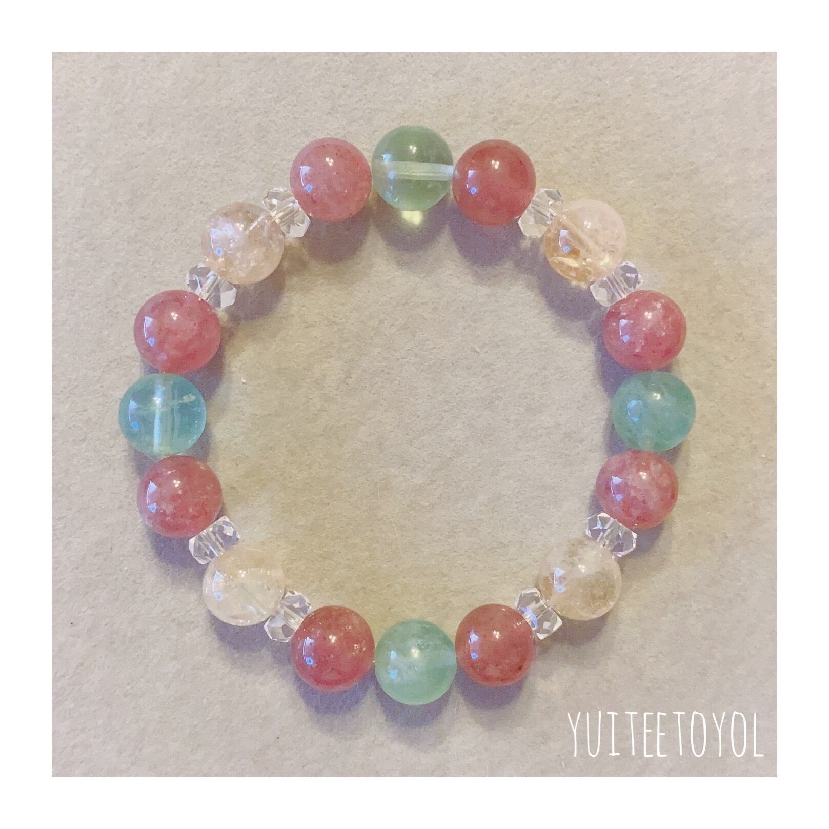 16cm【ポジティブさと無限の可能性で勝利✴︎】4月誕生石・タイチンルチルクォーツ・水晶・ピンクエピドート・フローライト・天然石・パワーストーン・ヒーリングストーン・ブレスレット・浄化済み