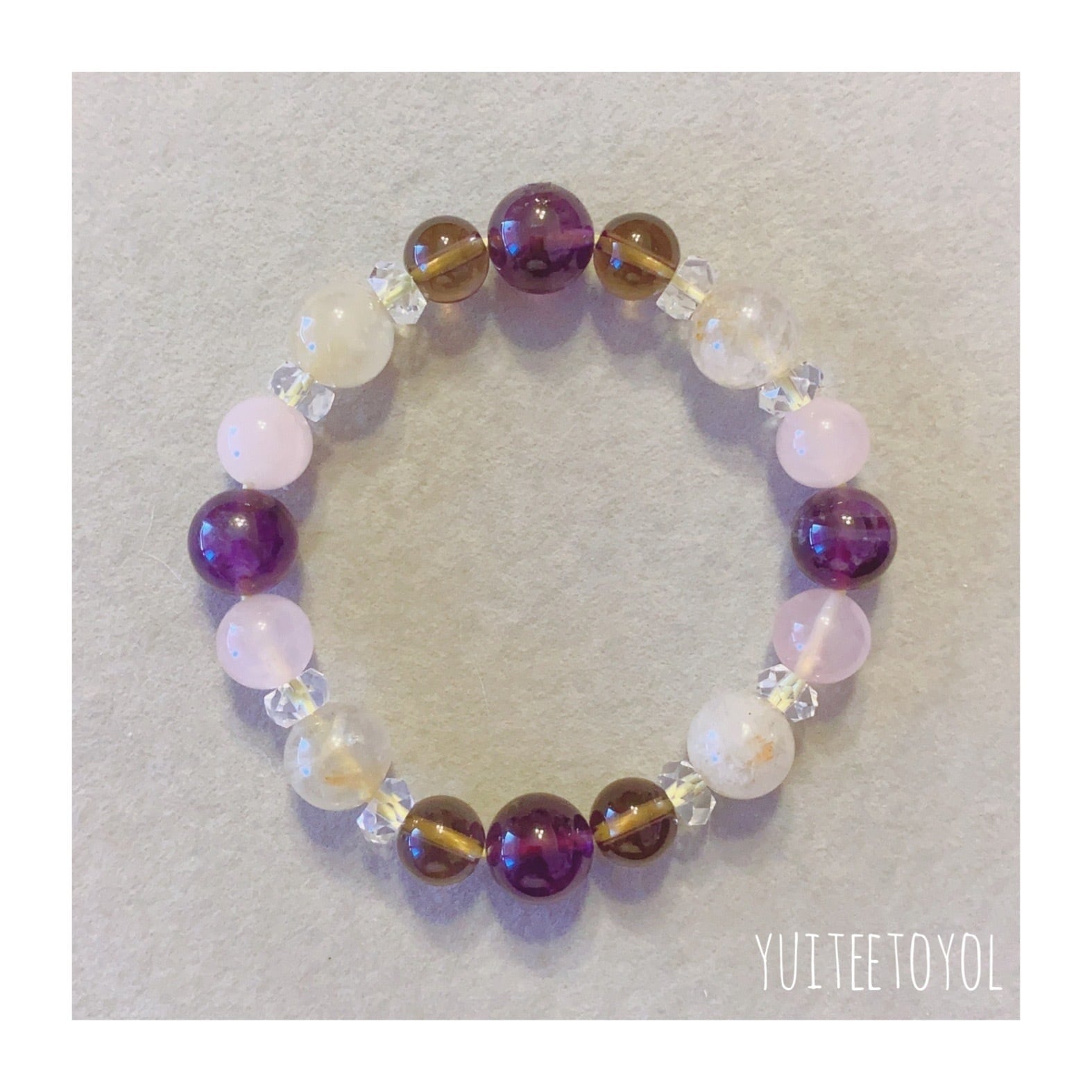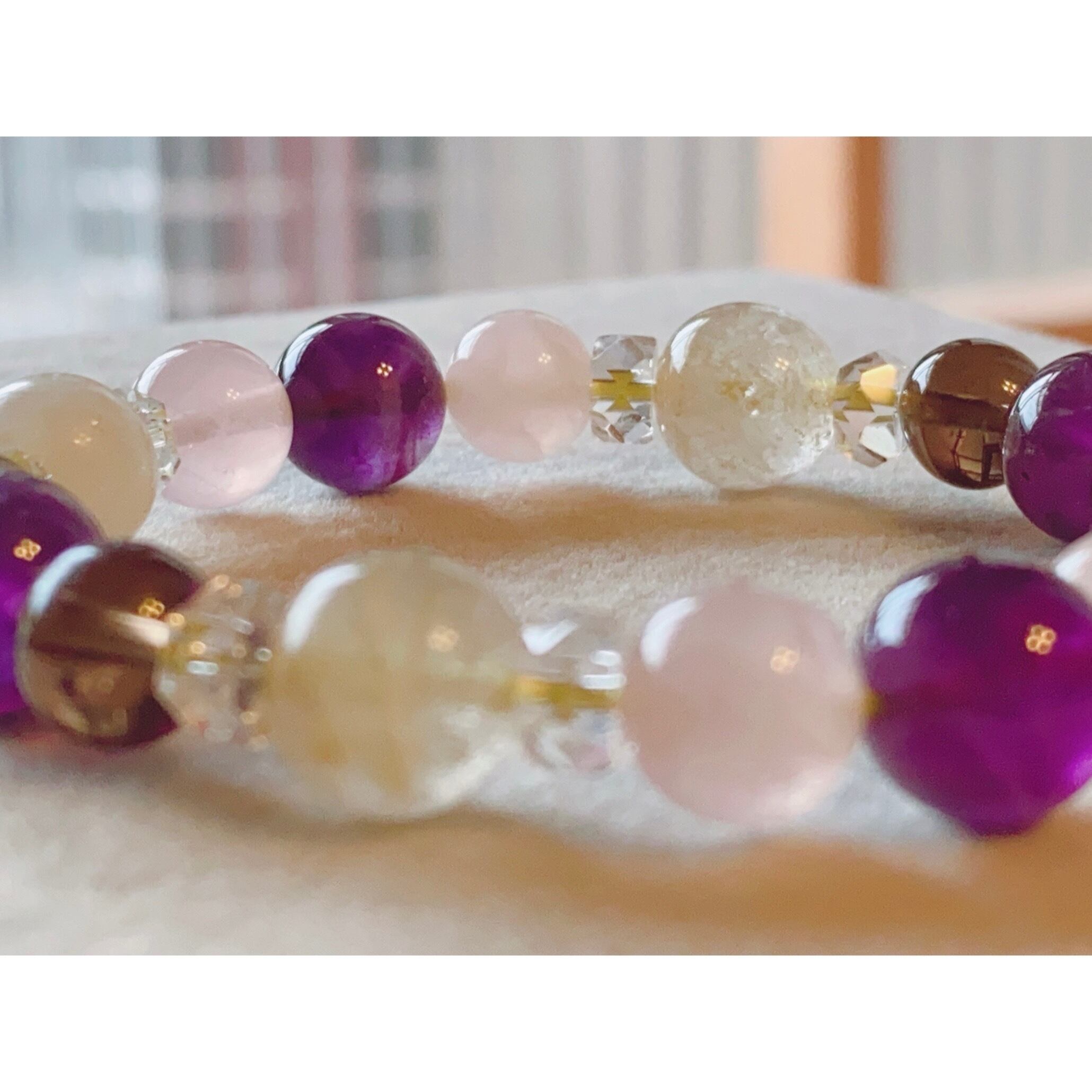 15cm【蟠りを断ち切って運命の糸へ】2月誕生石・アメジスト・4月誕生石・水晶・スモーキークォーツ・タイチンルチルクォーツ・10月誕生石・ローズクォーツ・天然石・パワーストーン・ヒーリングストーン・ブレスレット・浄化済み