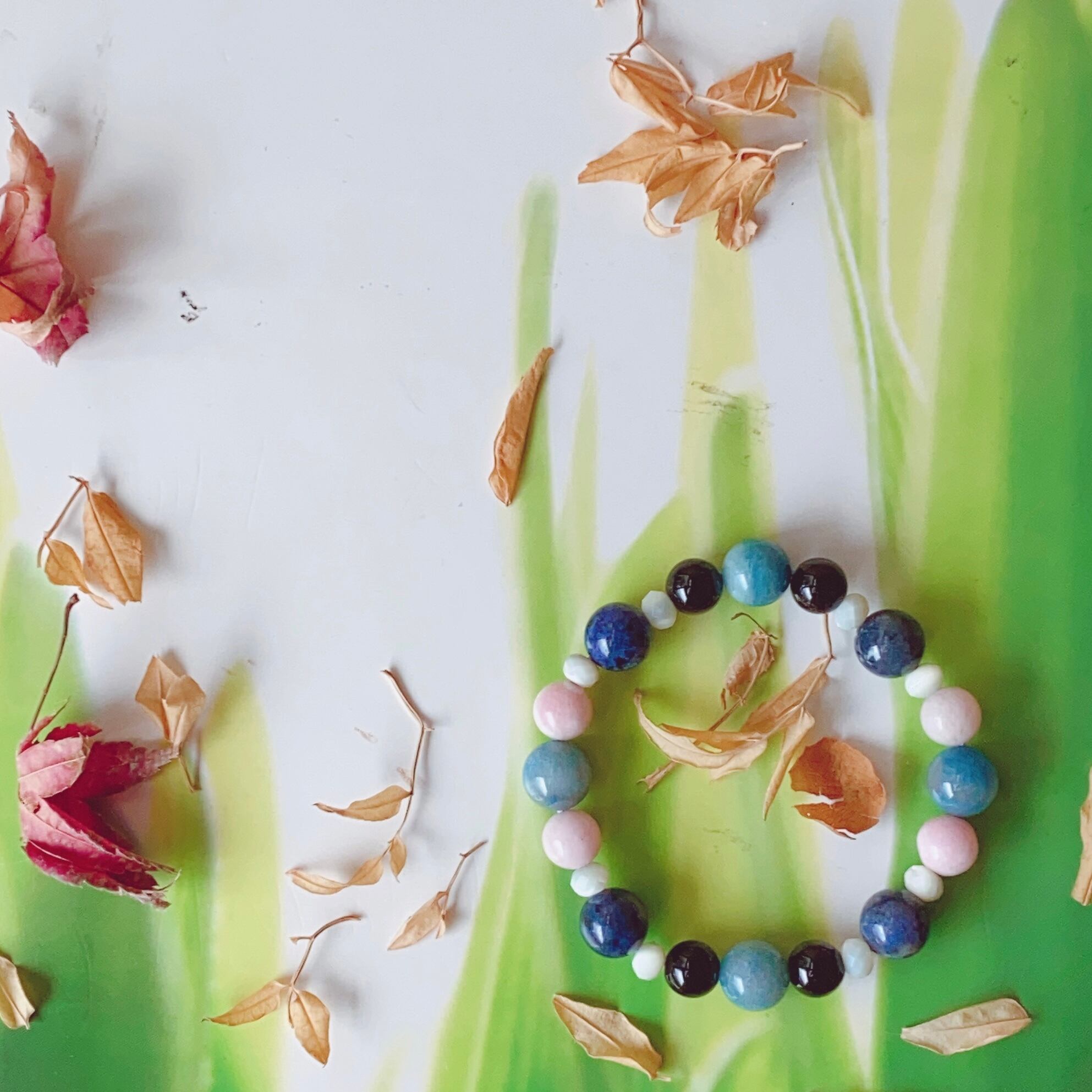 16cm【イージーゴーイング】トロレアイト・トロール石・チューライト・デュモルチェライト・マザーオブパール・天然石・パワーストーン・ヒーリングストーン・ブレスレット・曼荼羅・浄化済み