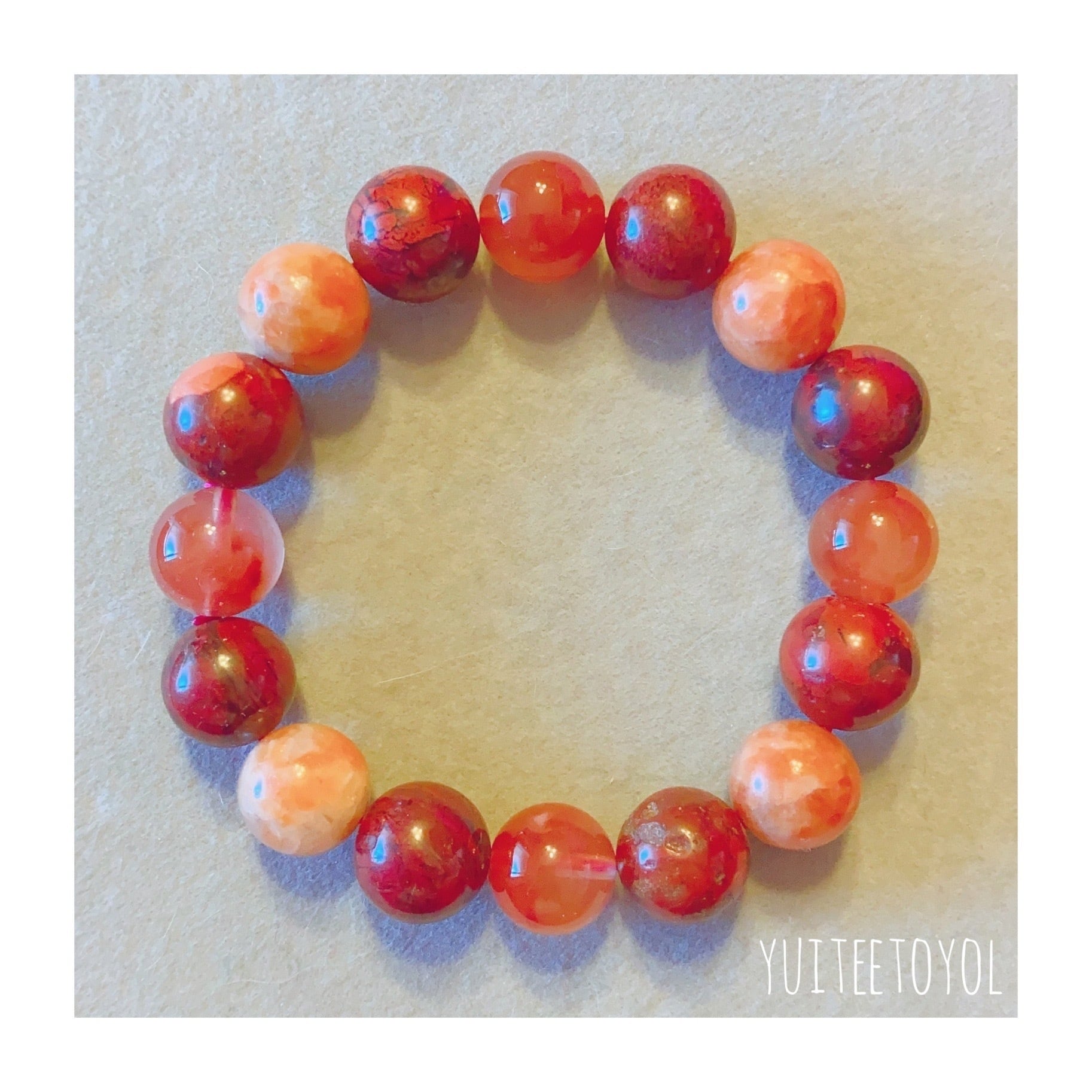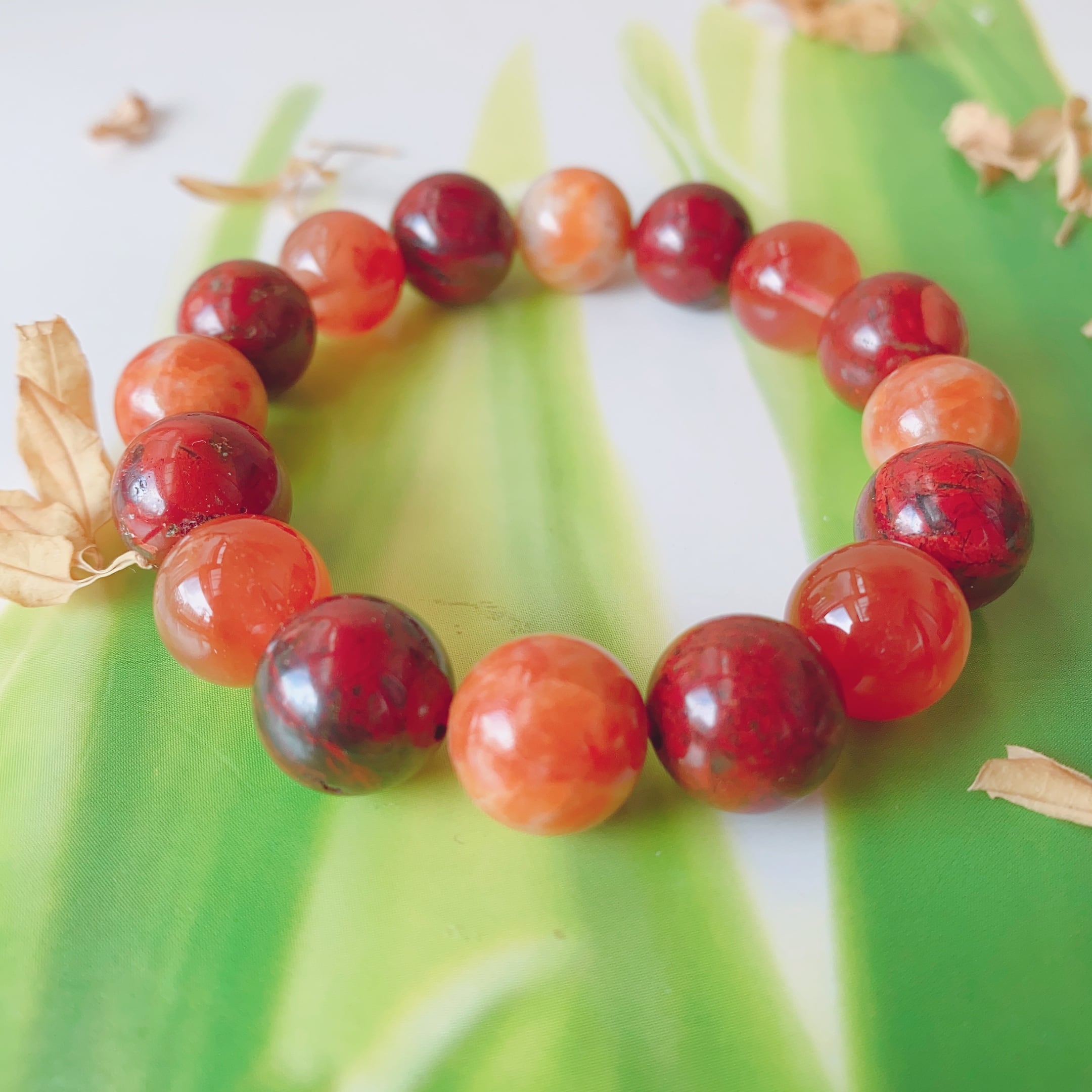 16cm【熱帯夜】ポピージャスパー・オレンジカルサイト・レッドアンフィボールインクォーツ・4月誕生石・天然石・パワーストーン・ヒーリングストーン・ブレスレット・曼荼羅・浄化済み
