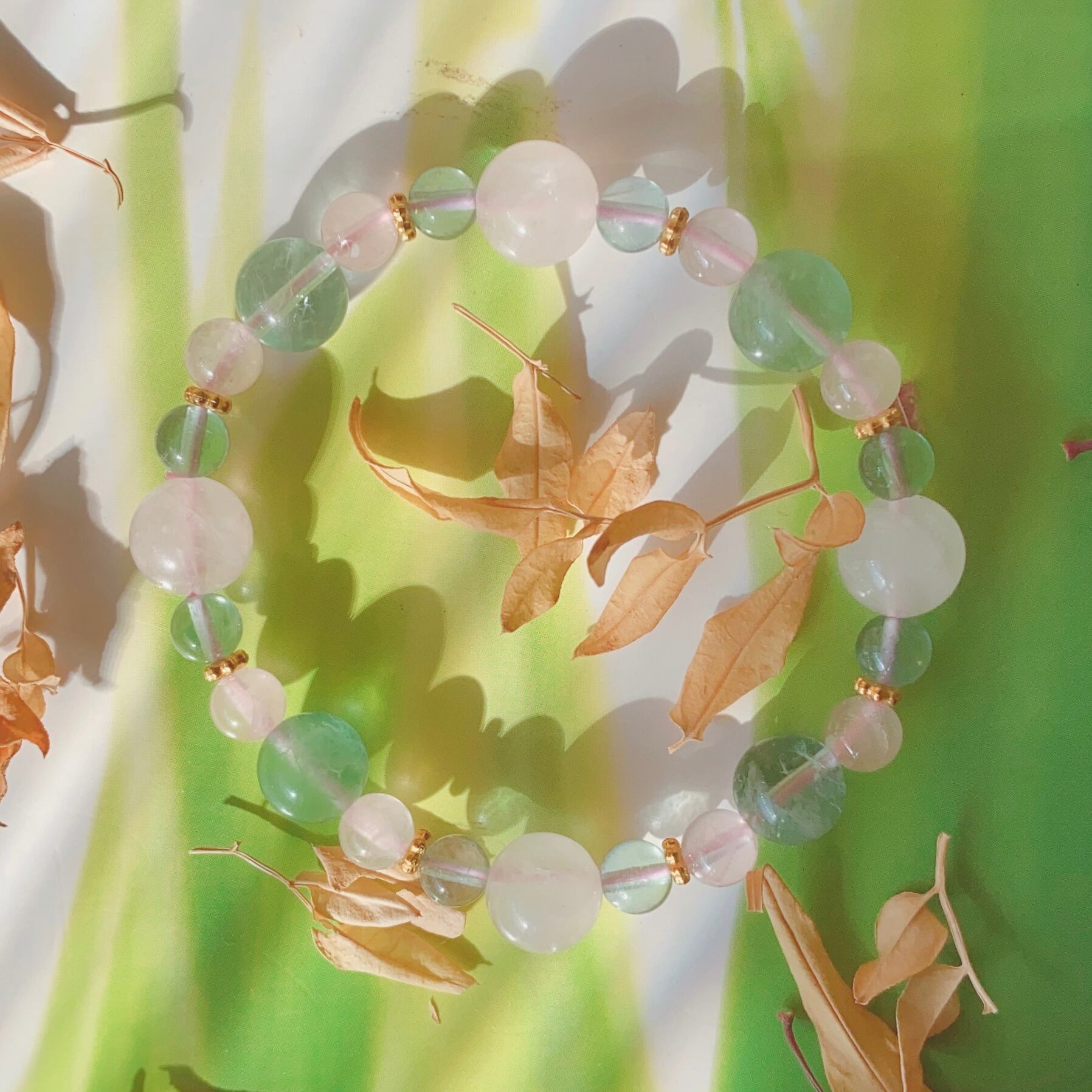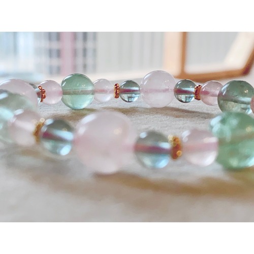 16cm【Each other】10月誕生石・ローズクォーツ・ブルーグリーンフローライト・フローライト・天然石・パワーストーン・ヒーリングストーン・曼荼羅・ゴールド・シルバー・浄化済み