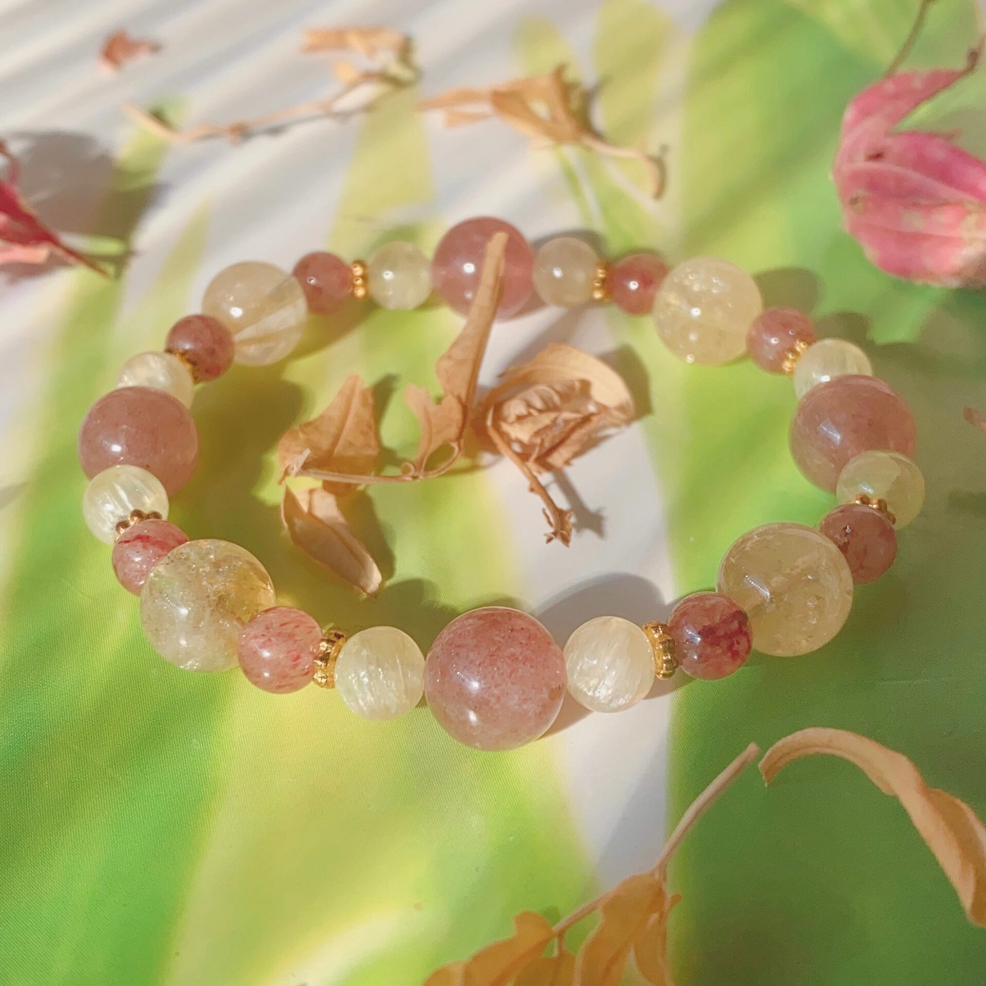 16cm【I believe】11月誕生石・ライトカラーシトリン・ピンクエピドート・イエローアラゴナイト・モスコバイト・天然石・パワーストーン・ヒーリングストーン・ブレスレット・メタルパーツ・浄化済み