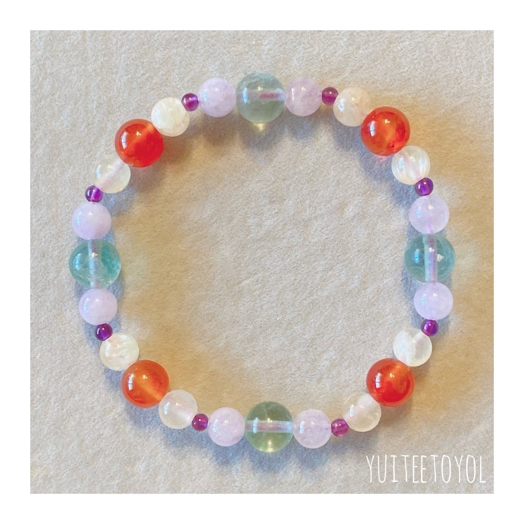 17cm【目標達成】2月誕生石・アメジスト・ラベンダーアメジスト・7月誕生石・カーネリアン・イエローアラゴナイト・フローライト・天然石・パワーストーン・ヒーリングストーン・ブレスレット・曼荼羅・浄化済み