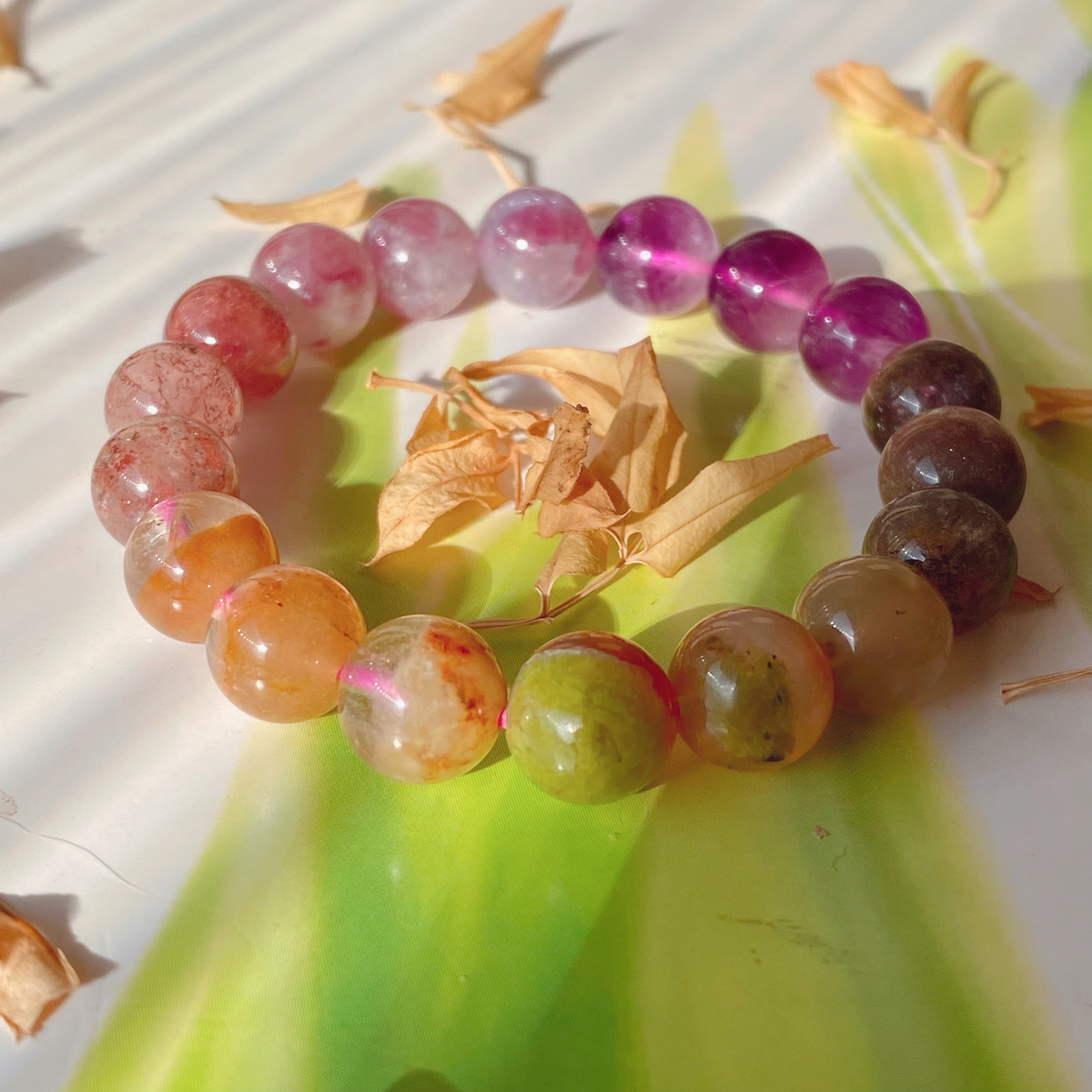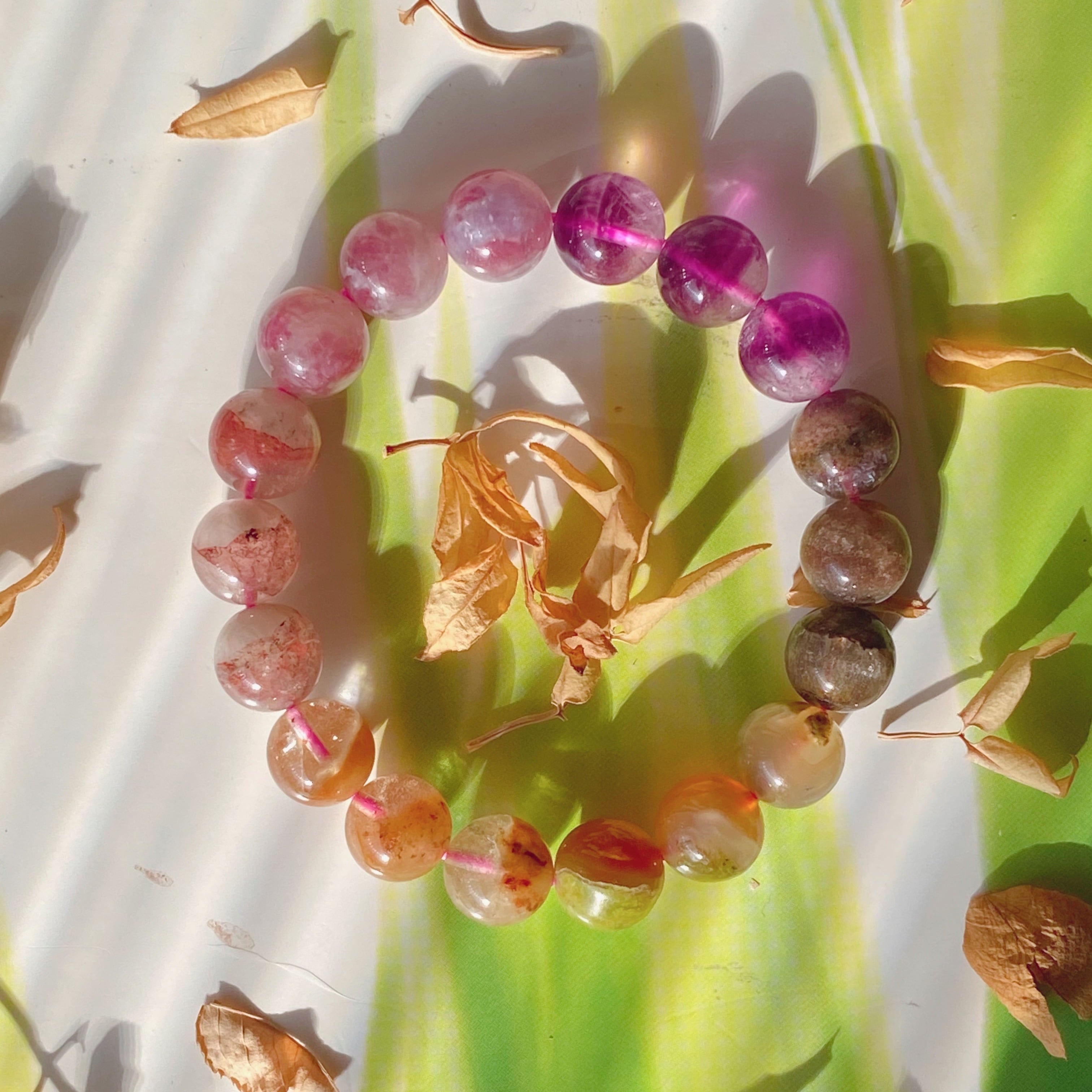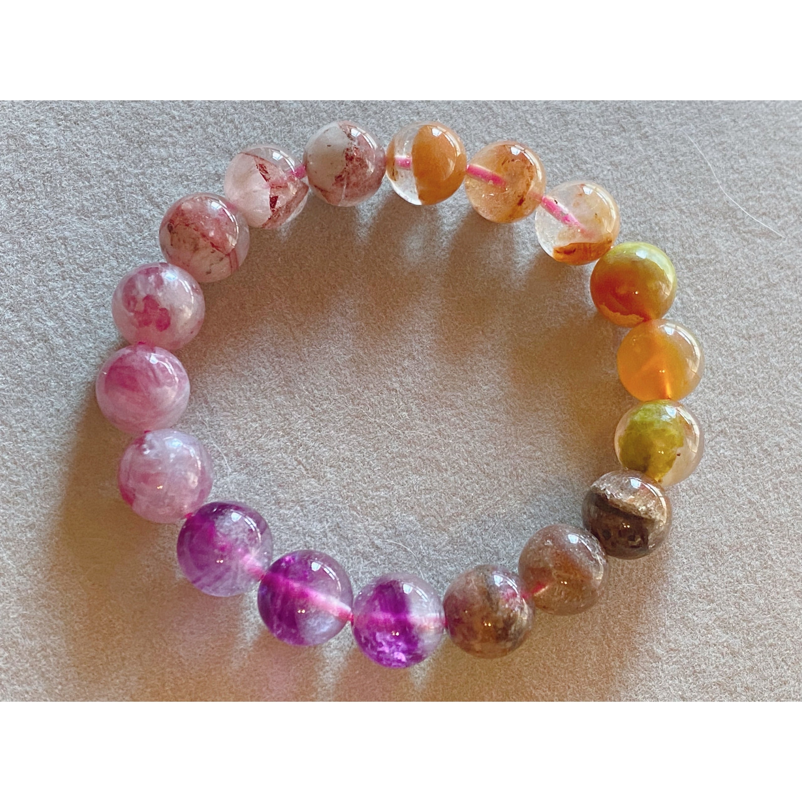 15.5cm【サーカス】レア!10月誕生石・ピンクトルマリンインレピドライトシリカ・オパールアゲート・パープルフローライト ・レッドファントムクォーツ・アンフィボール・天然石・パワーストーン・ヒーリングストーン・浄化済み