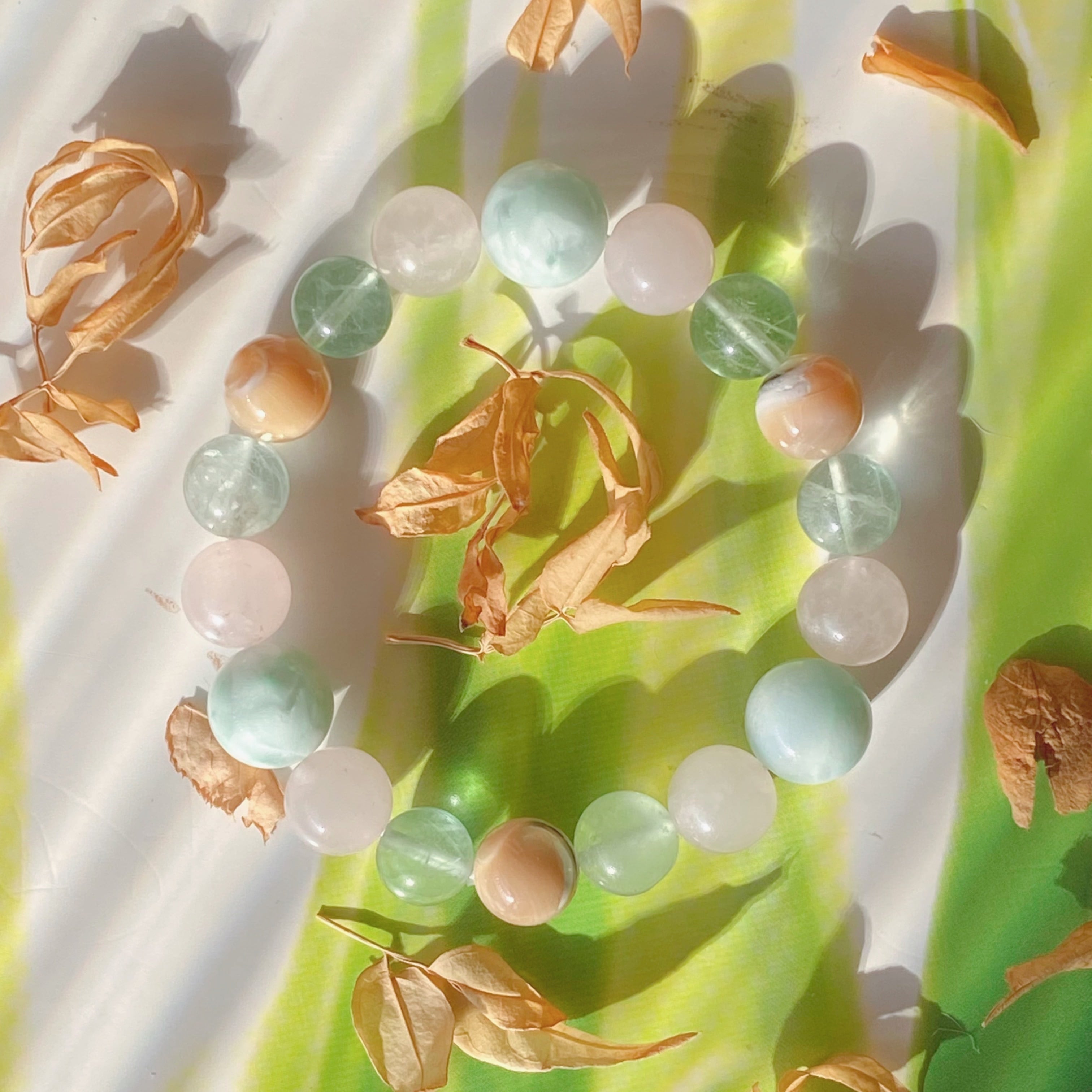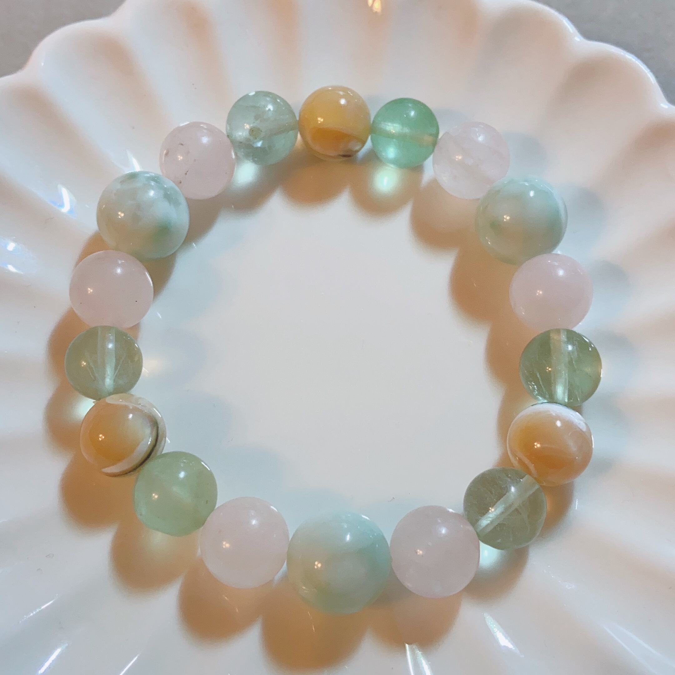16cm【ピンクラグーン♡】6月誕生石・マザーオブパール・10月誕生石・ローズクォーツ・ペルー産セラフィナイト・フローライト・天然石・パワーストーン・ヒーリングストーン・ブレスレット・曼荼羅・浄化済み