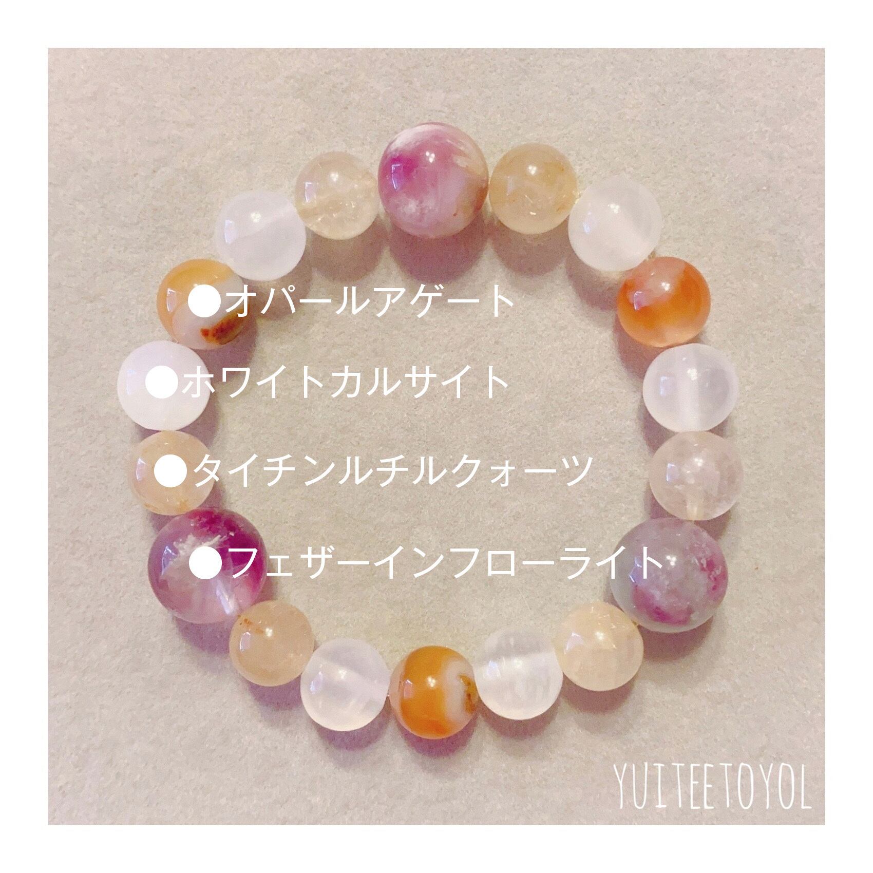 16cm【パラダイスフラワー】4月誕生石・タイチンルチルクォーツ・フェザーインフローライト・オパールアゲート・ホワイトカルサイト・天然石・パワーストーン・ヒーリングストーン・ブレスレット・曼荼羅・浄化済み