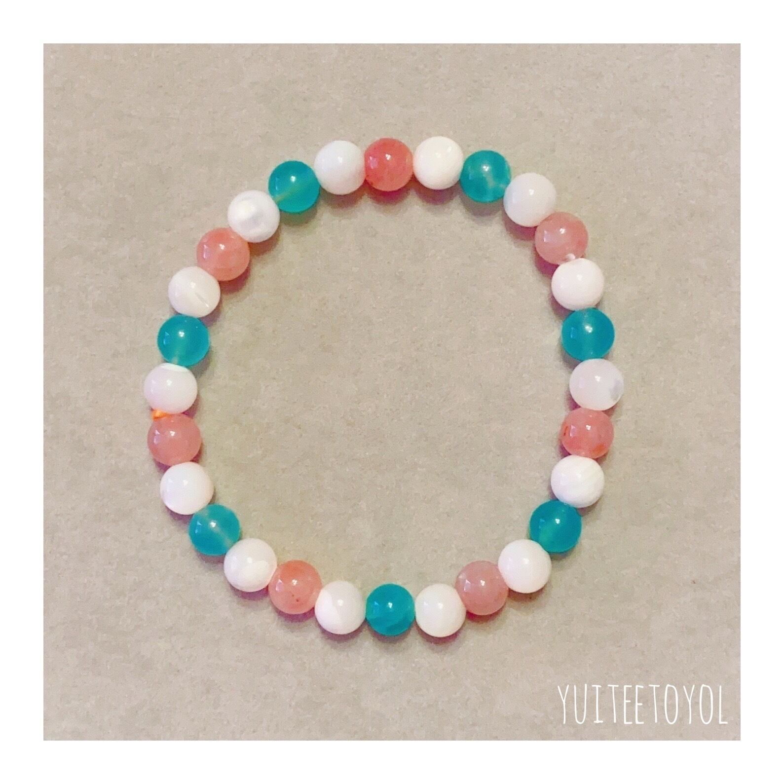 15.5cm【宇宙とコスモス】4月誕生石・グァバクォーツ・6月誕生石・マザーオブパール・ウイグル産アマゾナイト・天然石・パワーストーン・ヒーリングストーン・ブレスレット・浄化済み