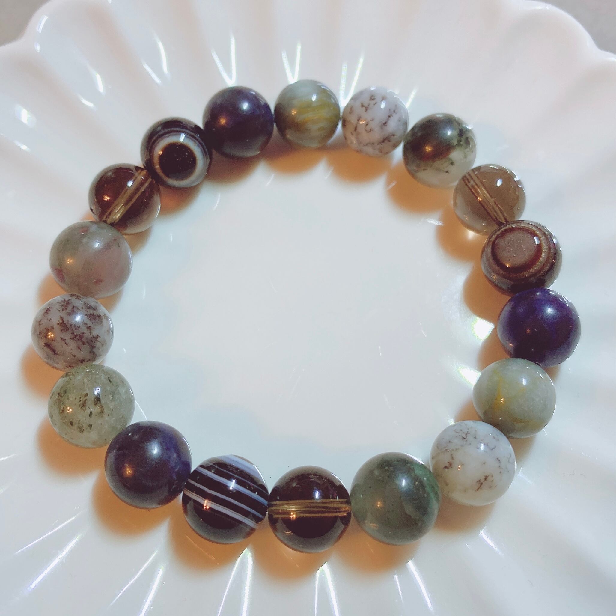 16cm【邪気・邪念・呪いを吹き飛ばす】3月4月10月11月誕生石・ブラッドストーン・スモーキークォーツ・ホワイトオパール・天眼石・イーグルアイ・ソーダライト・天然石・パワーストーン・ブレスレット・浄化済み