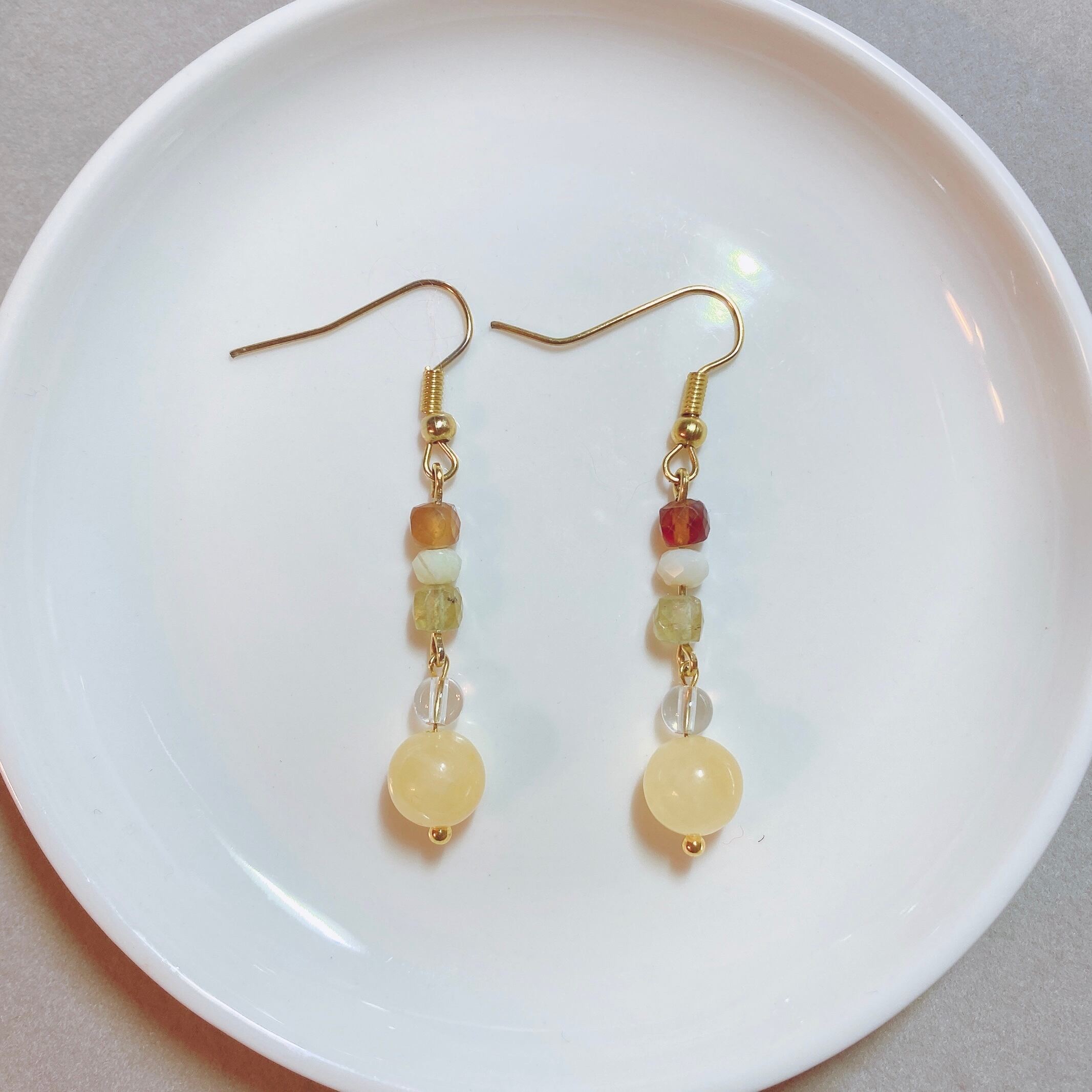 【エナジーチャージ】 4月誕生石・11月守護石・水晶・アラゴナイト・ヘソナイト・イエローオパール・イエローアパタイト・天然石・パワーストーン・ヒーリングストーン・ピアス・イヤリング・浄化済み