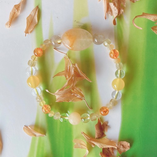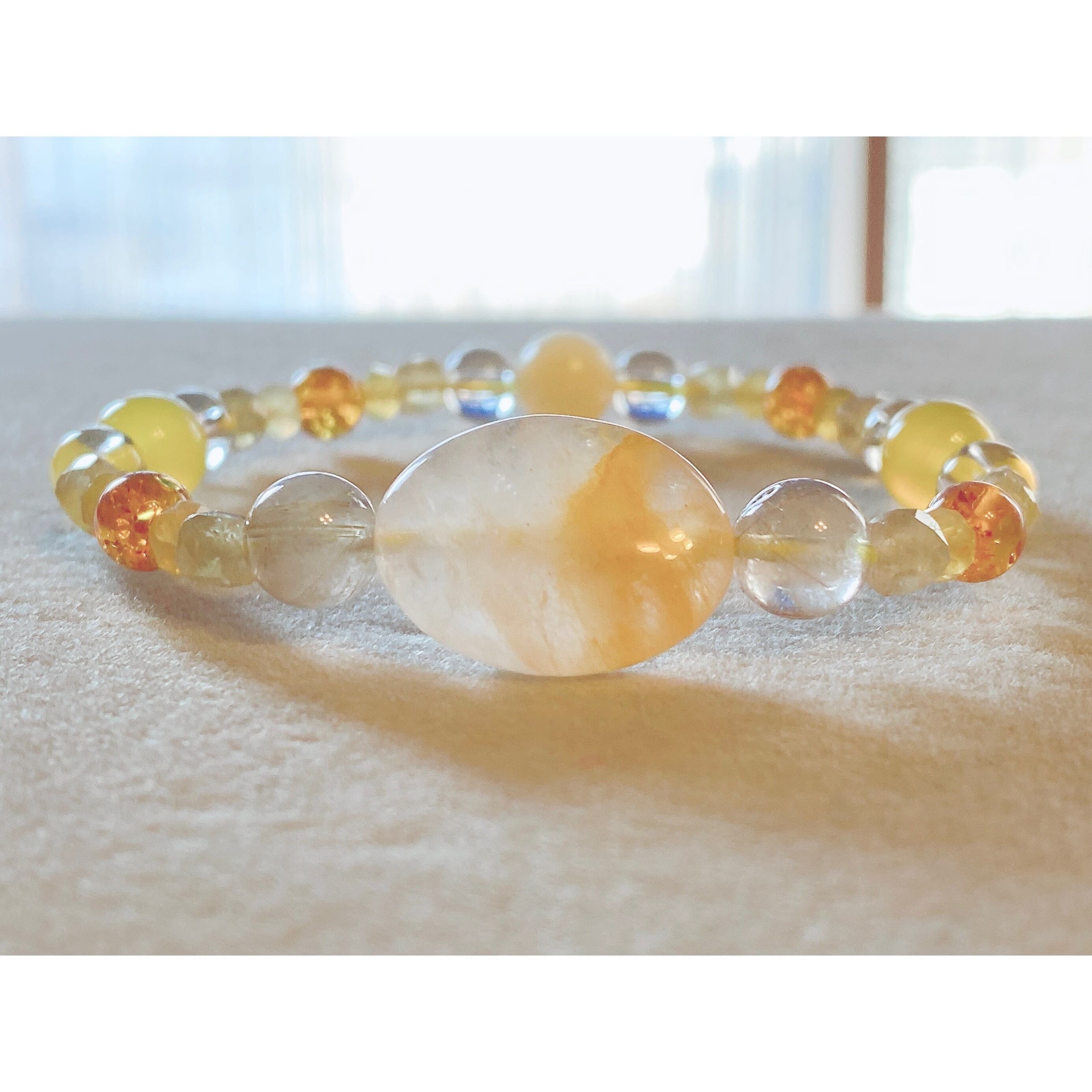 15.5cm【エナジーチャージ】4月誕生石・10月誕生石・ゴールデンルチルクォーツ・アンバー・イエローアパタイト・カルセドニー・オパール・水晶・天然石・パワーストーン・ヒーリングストーン・ブレスレット・浄化済み
