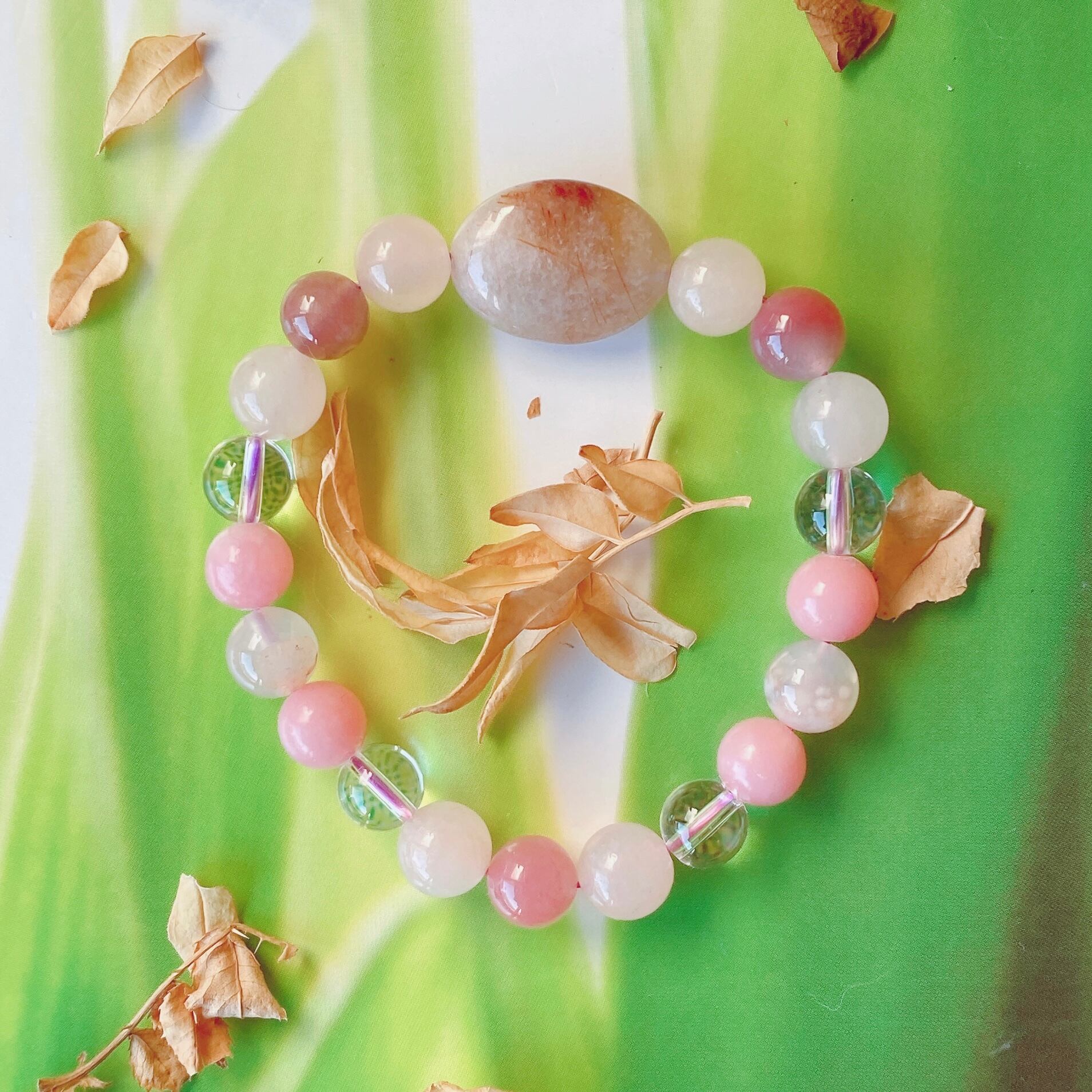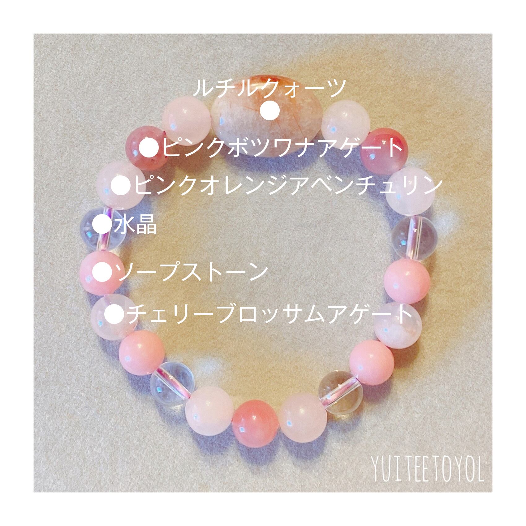15cm【愛情を注ぐ】4月誕生石・5月誕生石・水晶・ピンクオレンジアベンチュリン・ピンクボツワナアゲート・桜瑪瑙・ソープストーン・ルチルクォーツ・天然石・パワーストーン・ヒーリングストーン・ブレスレット・浄化済み