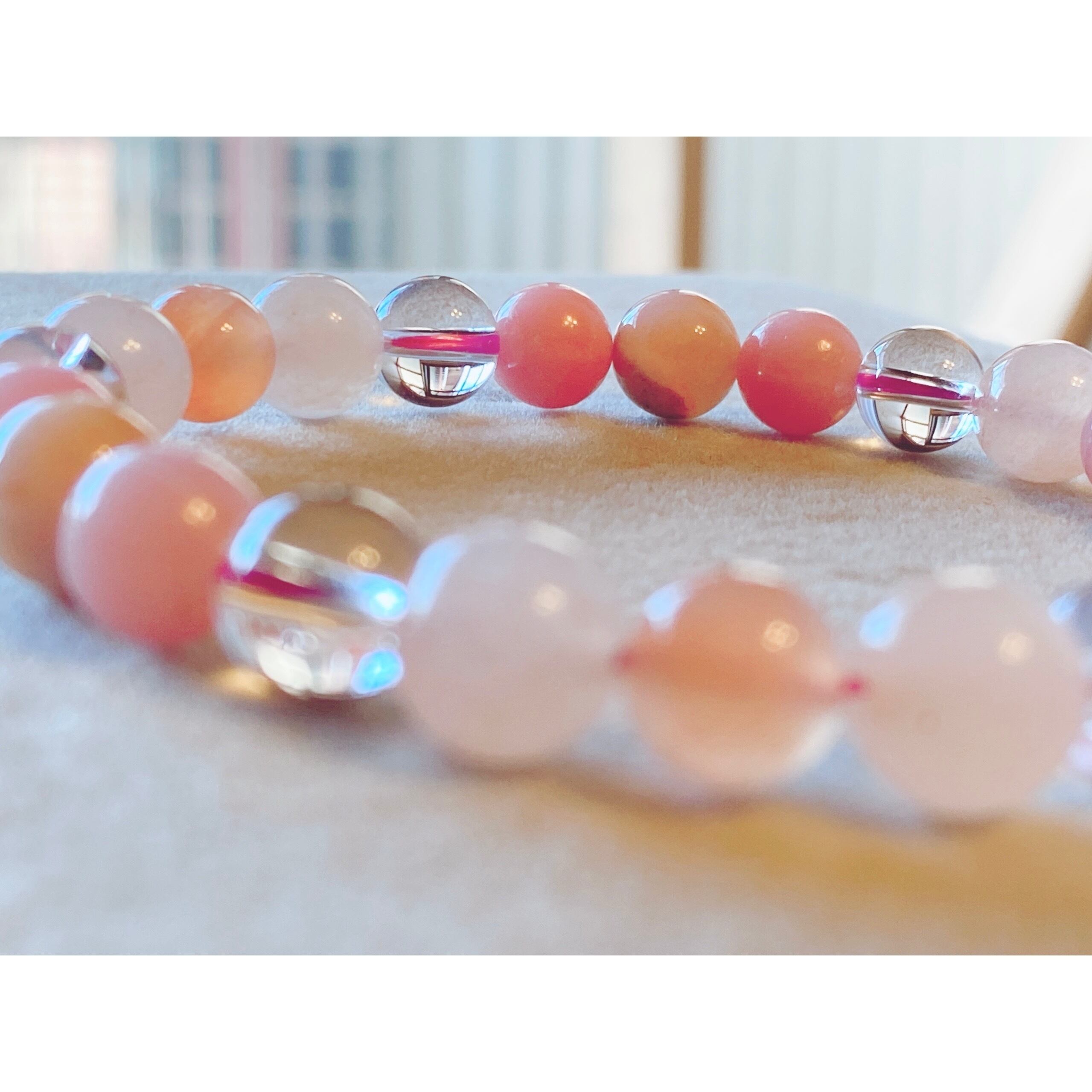 17.5cm【一蓮托生❁】4月誕生石・5月誕生石・水晶・ピンクオレンジアベンチュリン・ソープストーン・ピンクボツワナアゲート・桜瑪瑙・天然石・ヒーリングストーン・ブレスレット・浄化済み