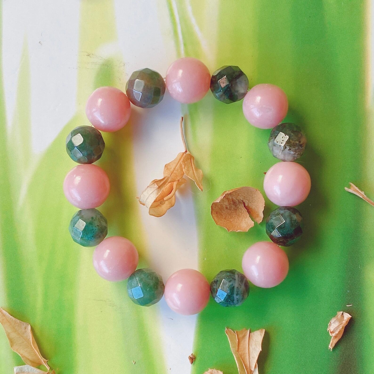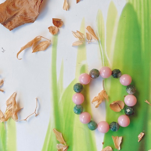 14cm【桜餅】ピンクタルク・インドメノウ・天然石・パワーストーン・浄化・ヒーリングストーン・ブレスレット・曼荼羅・浄化済み