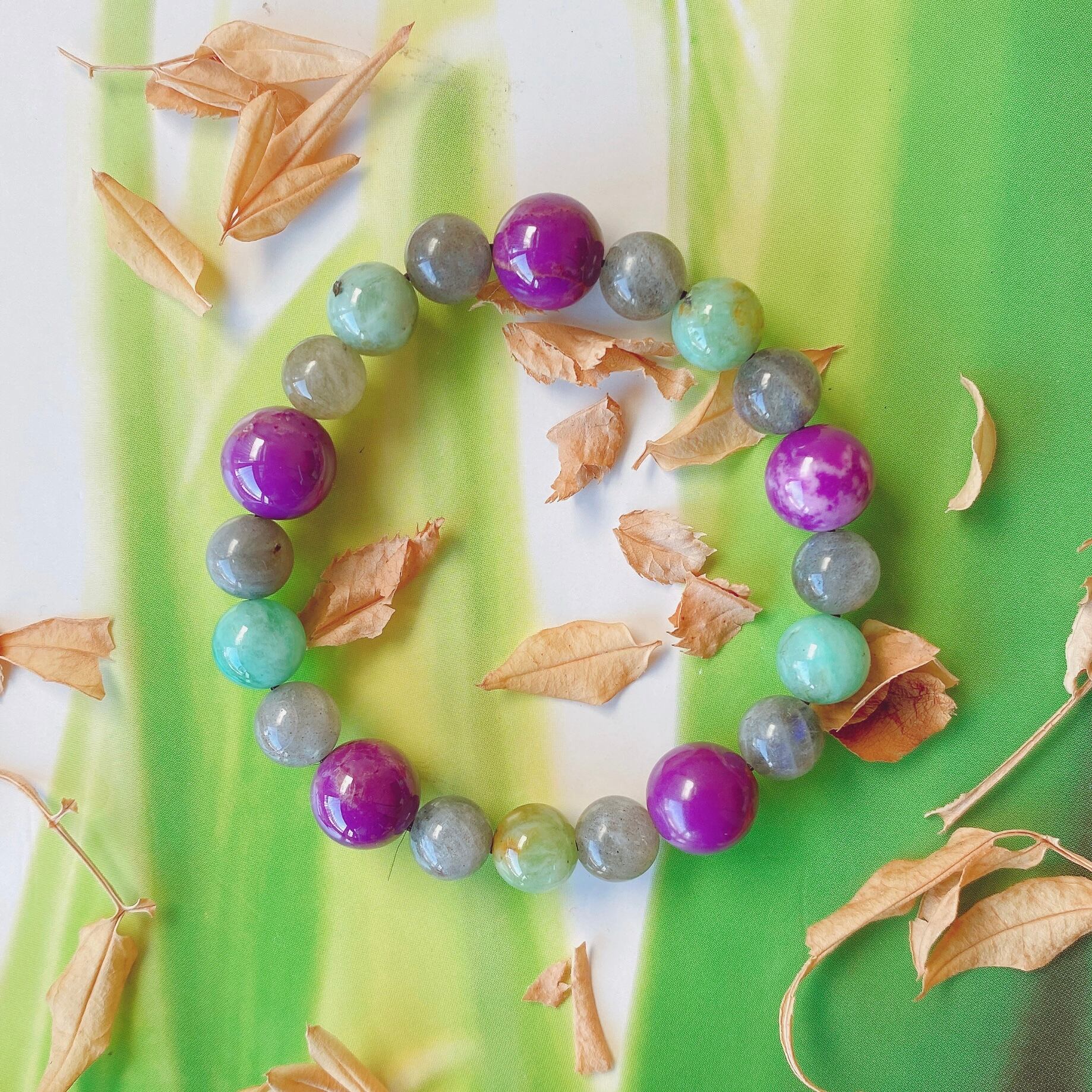 14.5cm【宇宙からのエネルギー発信!】スターシード・チャネリング・フォスフォシデライト・クリソコラシリカ・ラブラドライト・天然石・パワーストーン・ヒーリングストーン・ブレスレット・曼荼羅・浄化済み