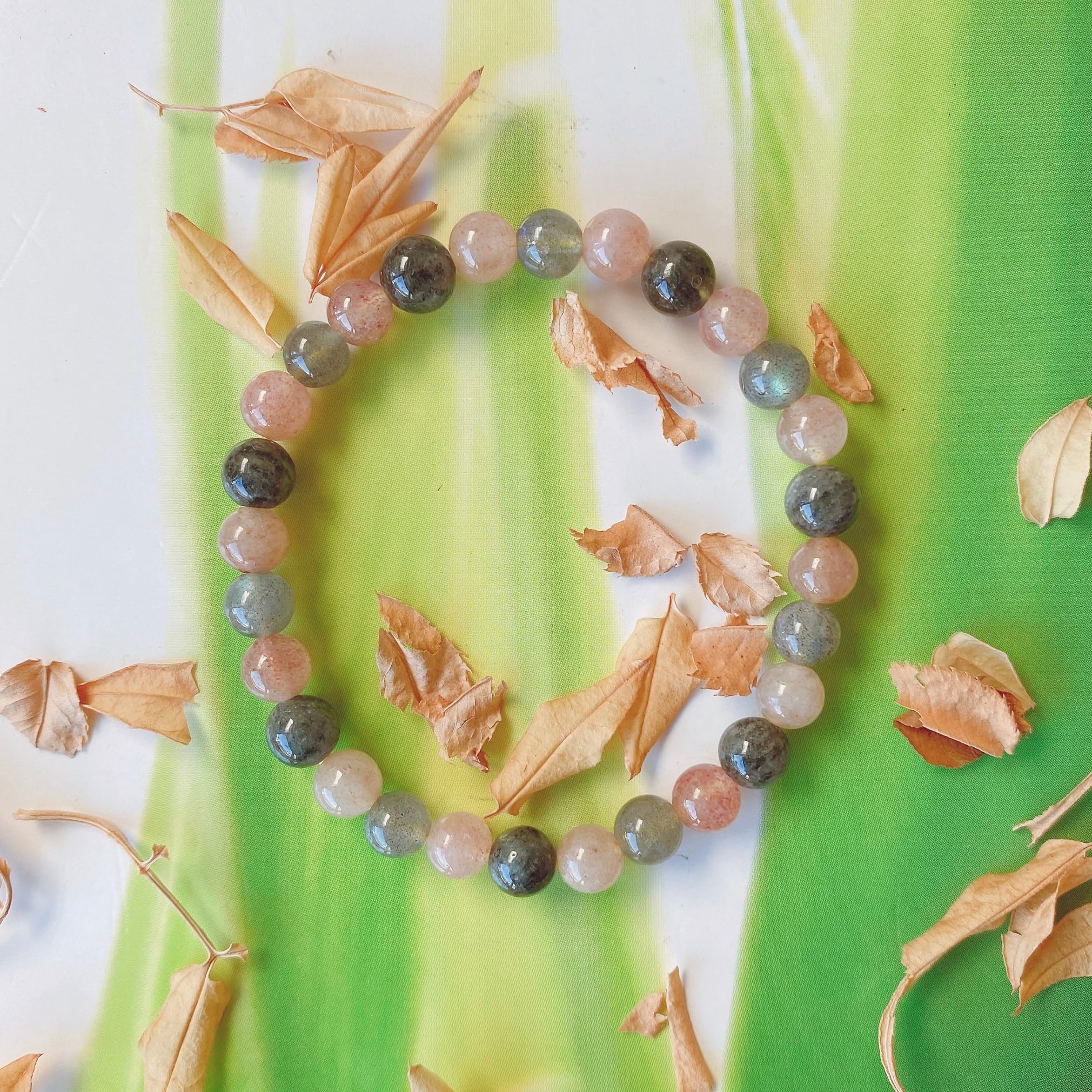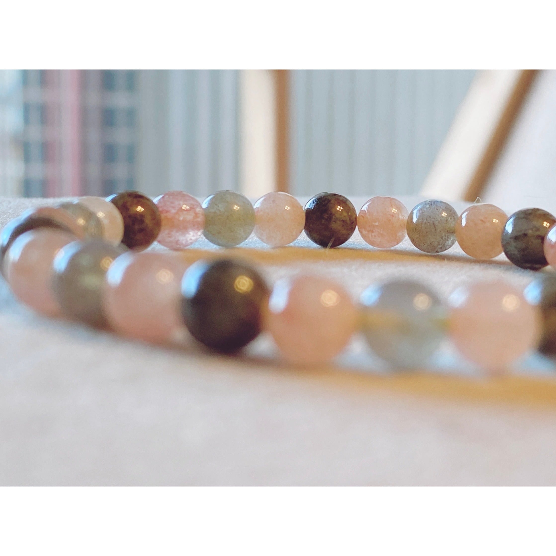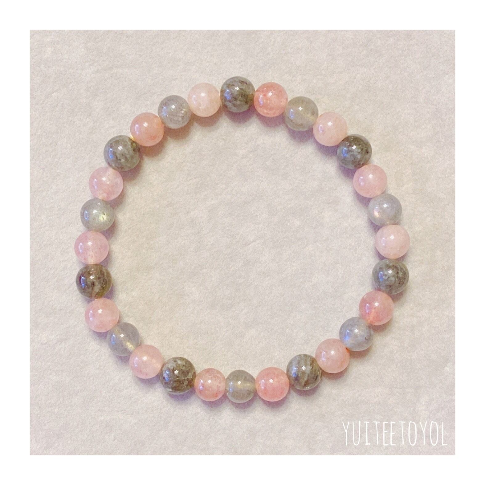 16cm【ブッダ】4月誕生石・ガーデンクォーツ・ストロベリークォーツ・ラブラドライト・天然石・パワーストーン・浄化・ヒーリングストーン・ブレスレット・浄化済み