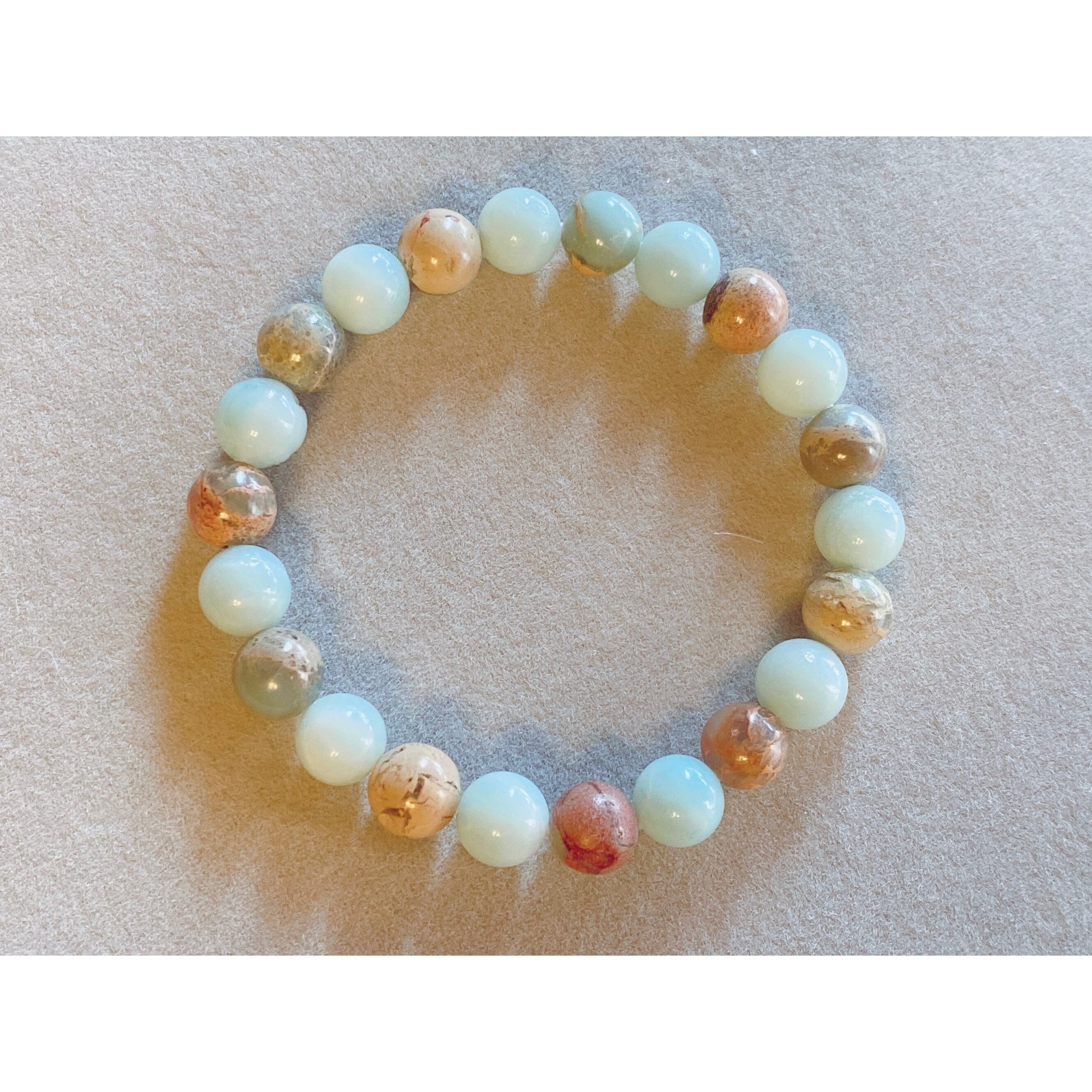 16cm【ワンネス】長さ変更可・インプレッションストーン・アマゾナイト・天然石・パワーストーン・ヒーリングストーン・ブレスレット・浄化済み