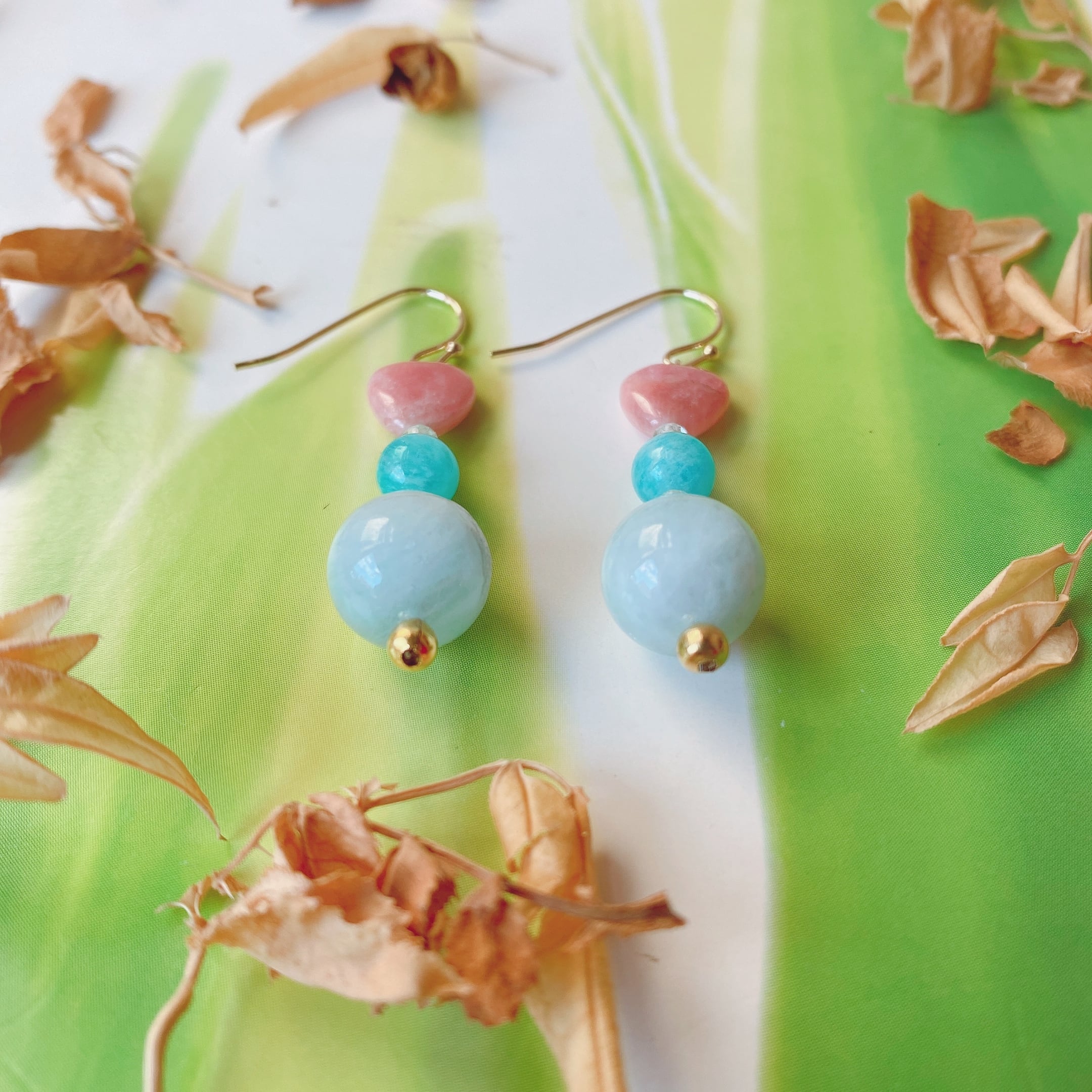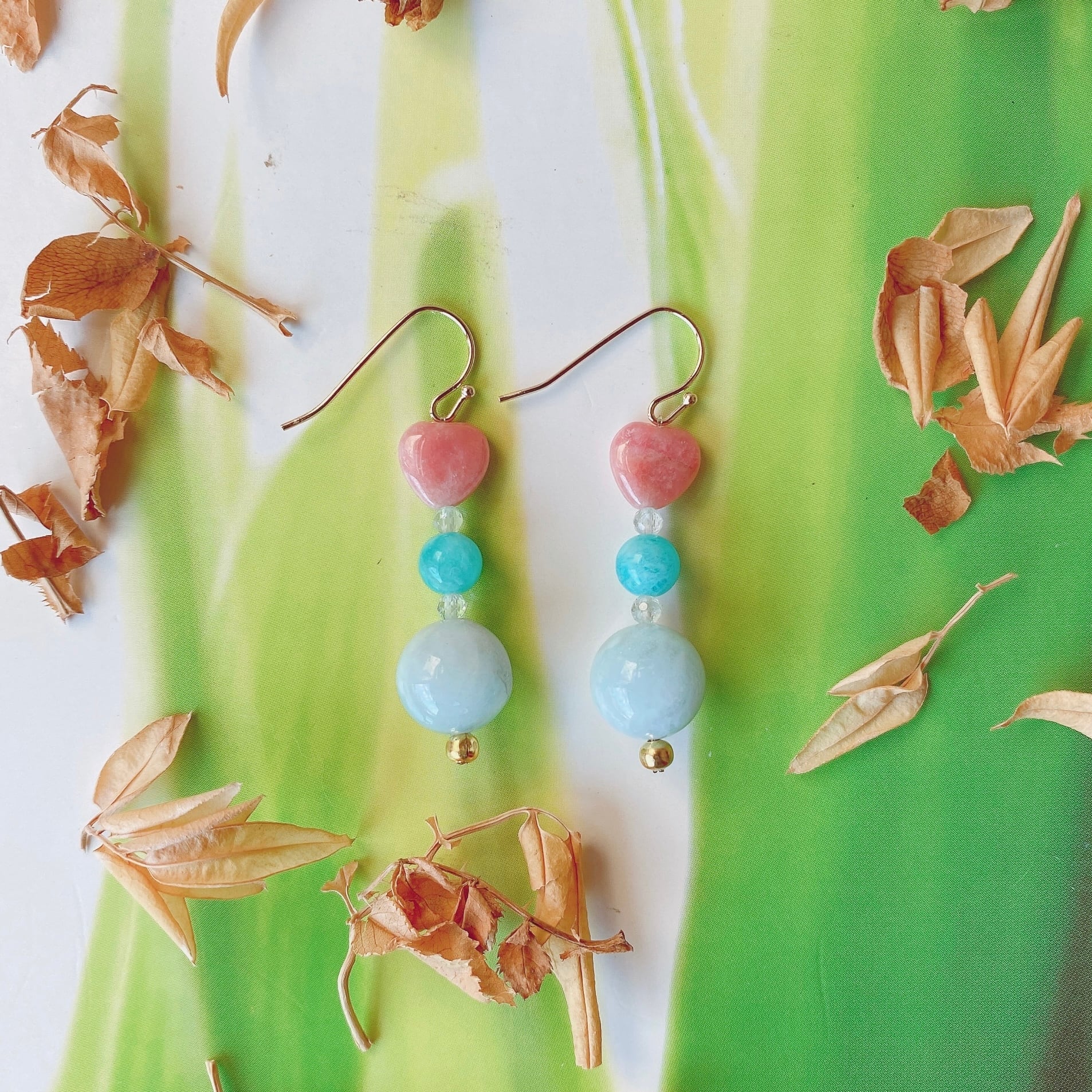 【サナト・クマラ】3月誕生石・7月誕生石・ハートインカローズ・アクアマリン・モザンビーク産アマゾナイト・ホワイトトパーズ・天然石・パワーストーン・ヒーリングストーン・ピアス・イヤリング・浄化済み
