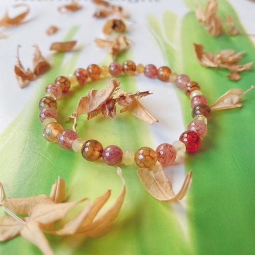 15.5cm【オリジナリティ】10月誕生石・モスコバイト・ドラゴンアゲート・イエローオパールボタンカット・天然石・パワーストーン・ヒーリングストーン・ブレスレット・浄化済み