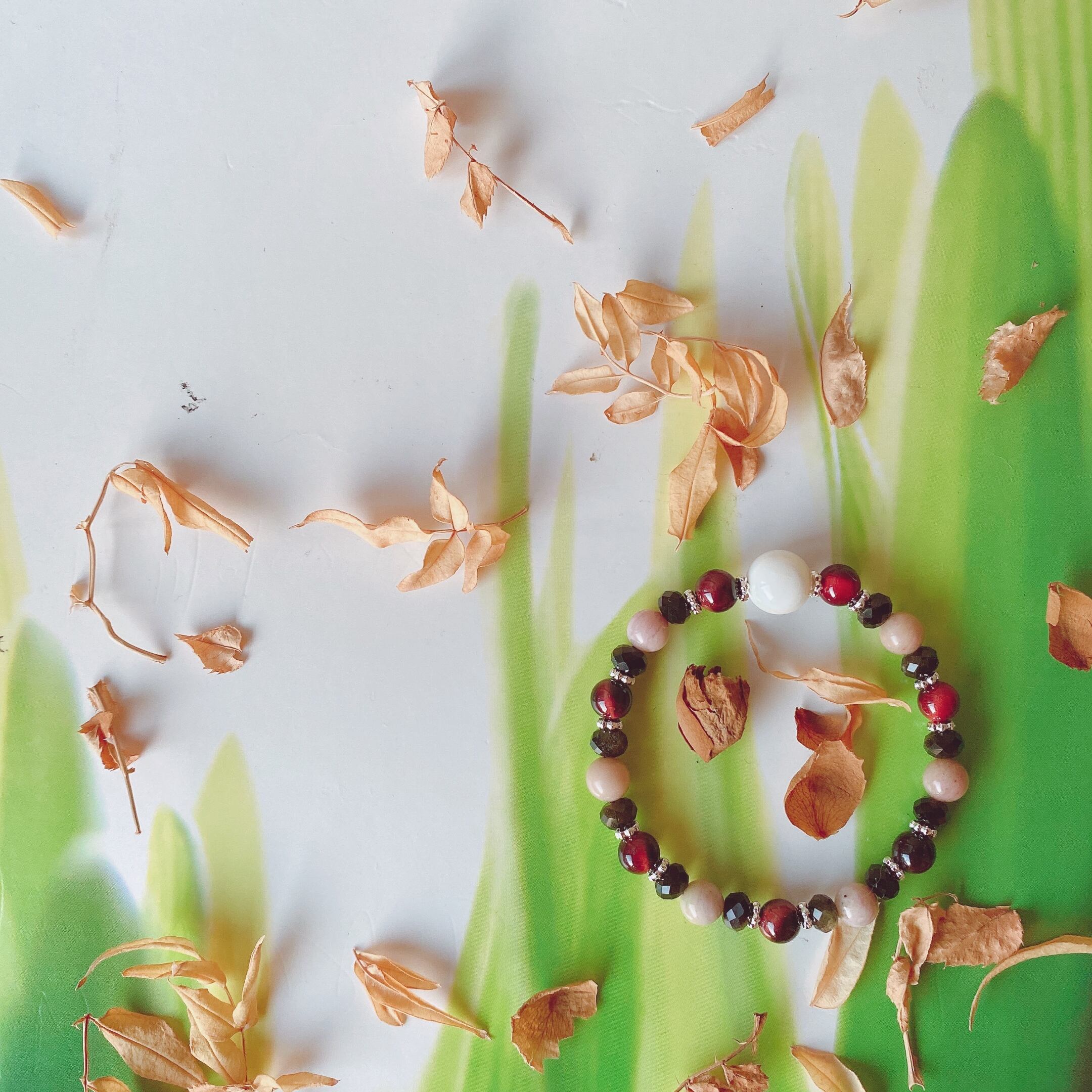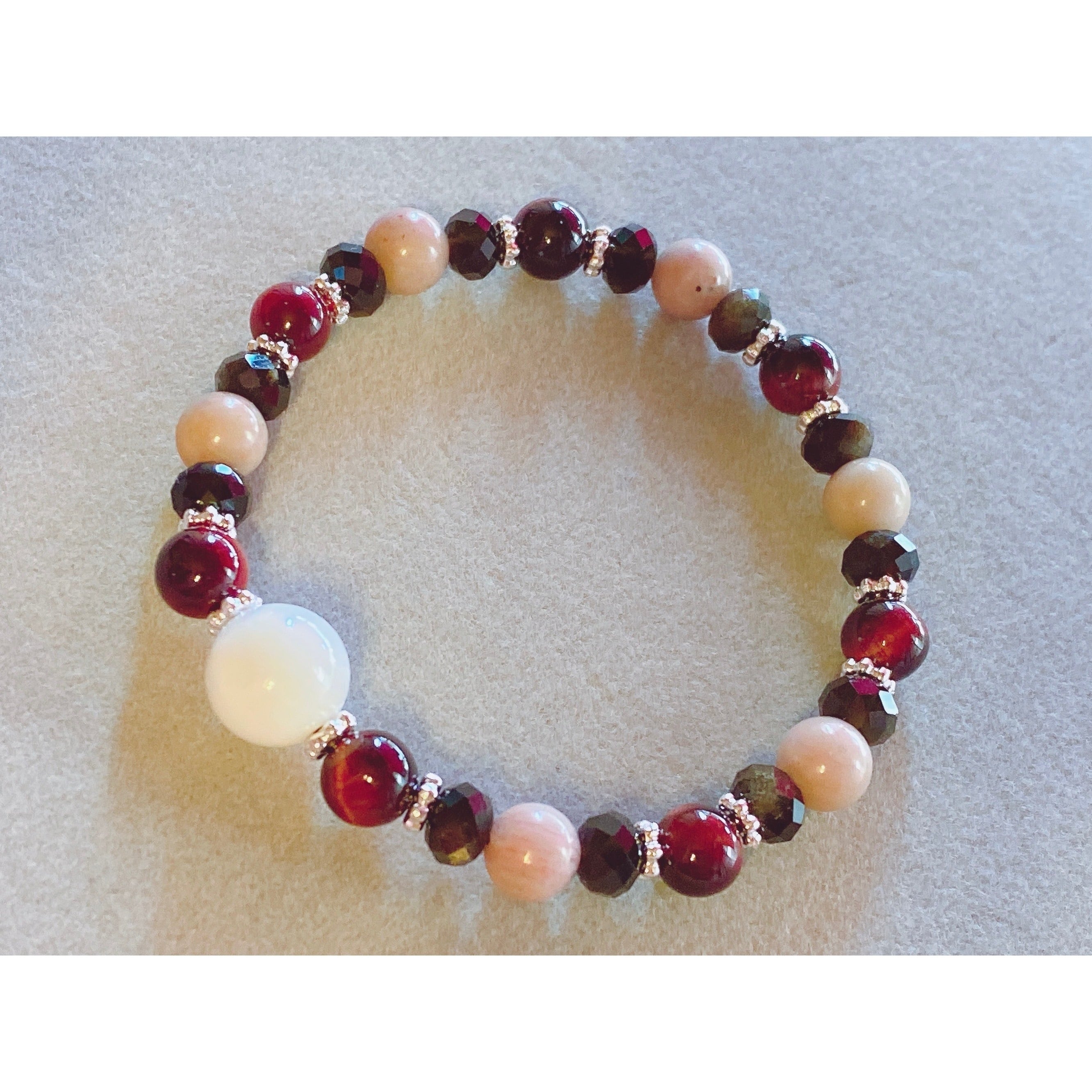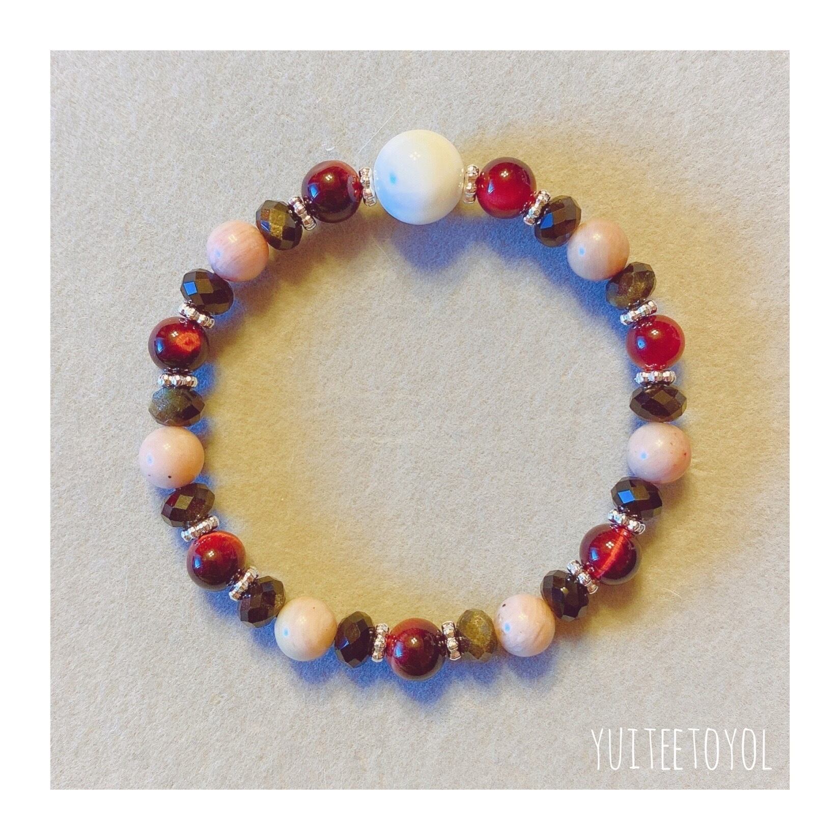 autumn&winter/15cm【レッド】ちょっとお洒落に♡ゴールデンシャコガイ・シリシャスシスト・レッドタイガーアイ・オブシディアン・天然石・パワーストーン・ヒーリングストーン・ブレスレット・浄化済み