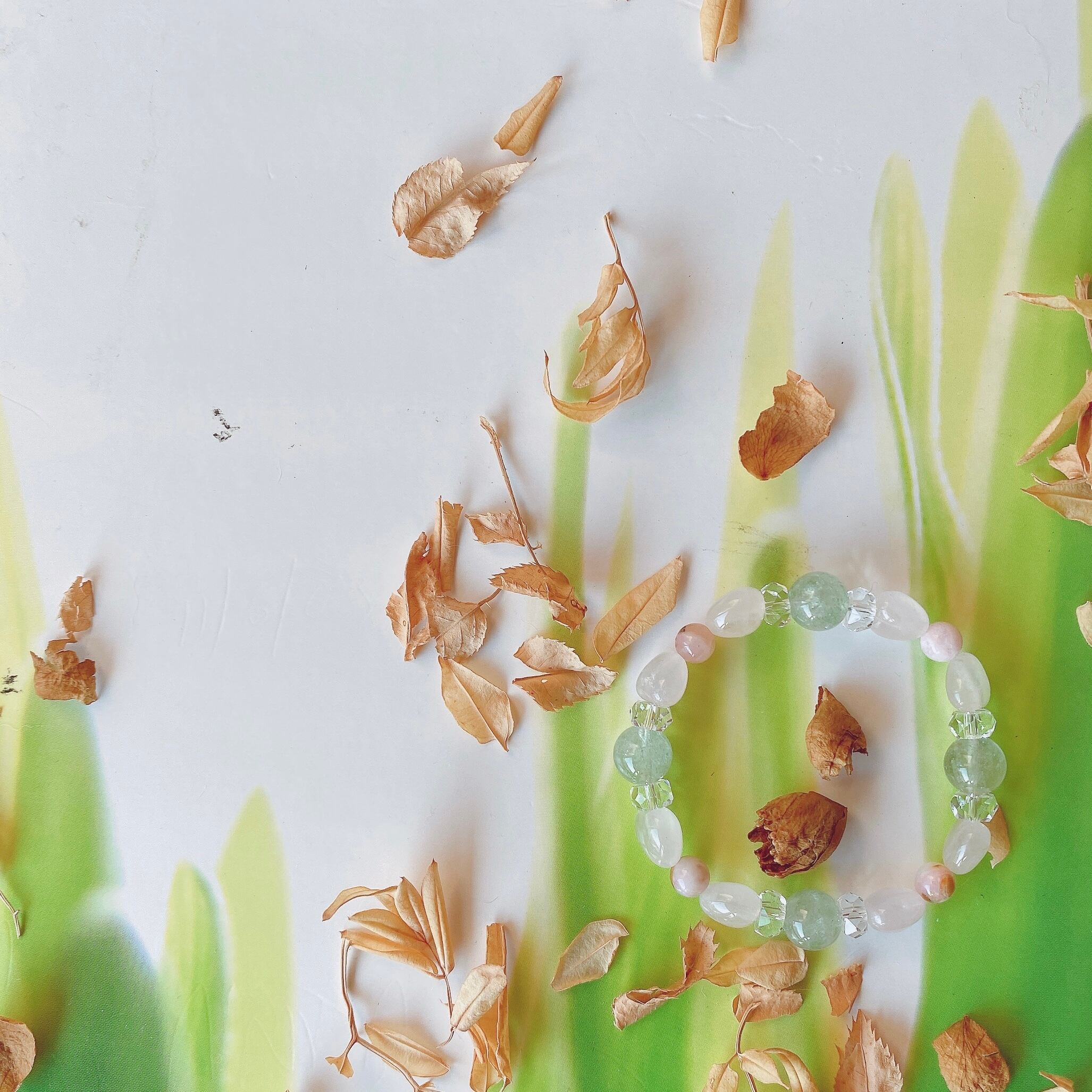 Kids size13.5cm【プリンセス】4月誕生石・10月誕生石・ハートローズクォーツ・グリーンストロベリークォーツ・水晶・ピンクオパール・天然石・パワーストーン・ブレスレット・曼荼羅・浄化済み