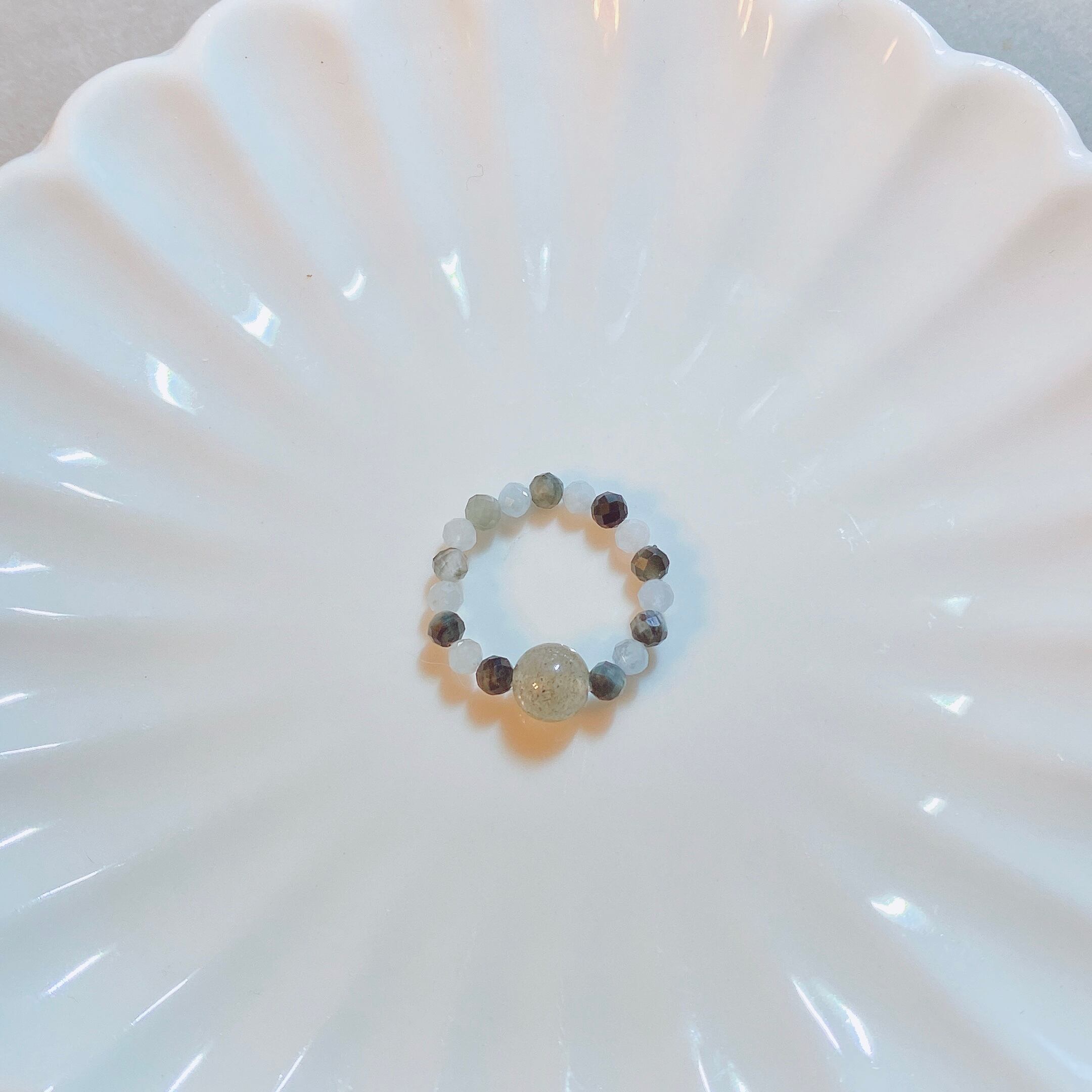 伸び縮みするゴム紐と小粒の天然石を使用しておりますので指にするっと馴染みます。