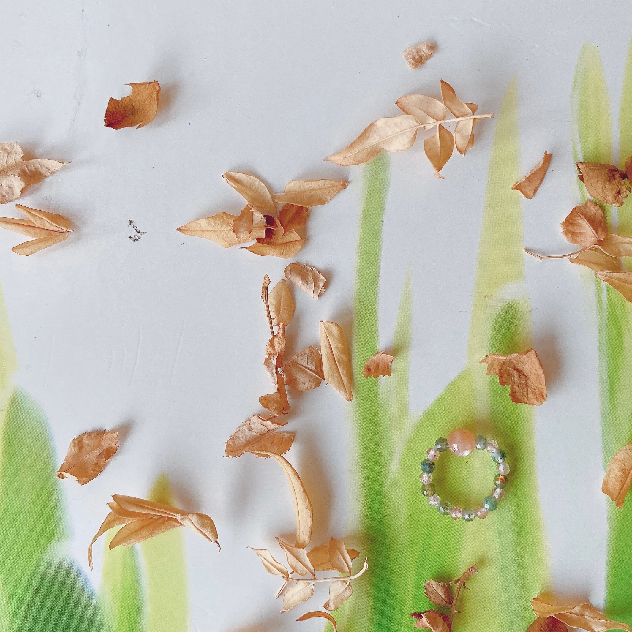 伸び縮みするゴム紐と小粒の天然石を使用しておりますので指にするっと馴染みます。