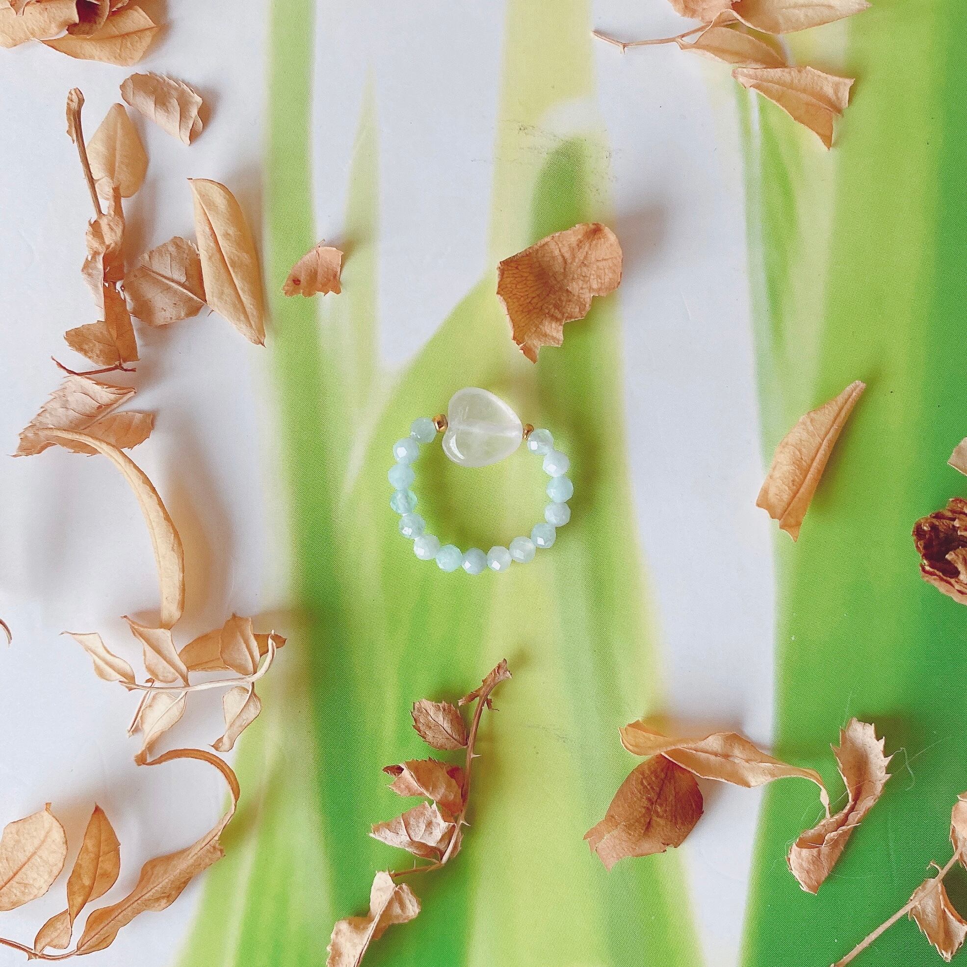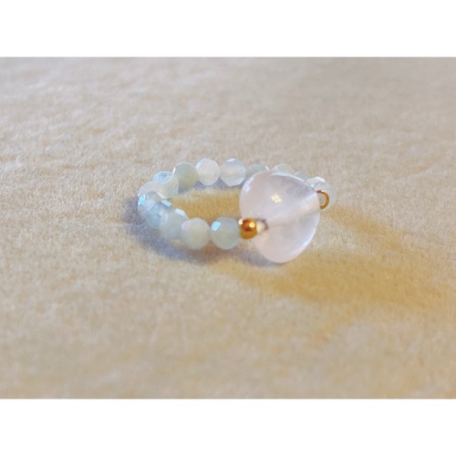 【爽やかに美しく】3月誕生石・10月誕生石・ハートローズクォーツ・アクアマリン・天然石・パワーストーン・ヒーリングストーン・指輪・リング・浄化済み