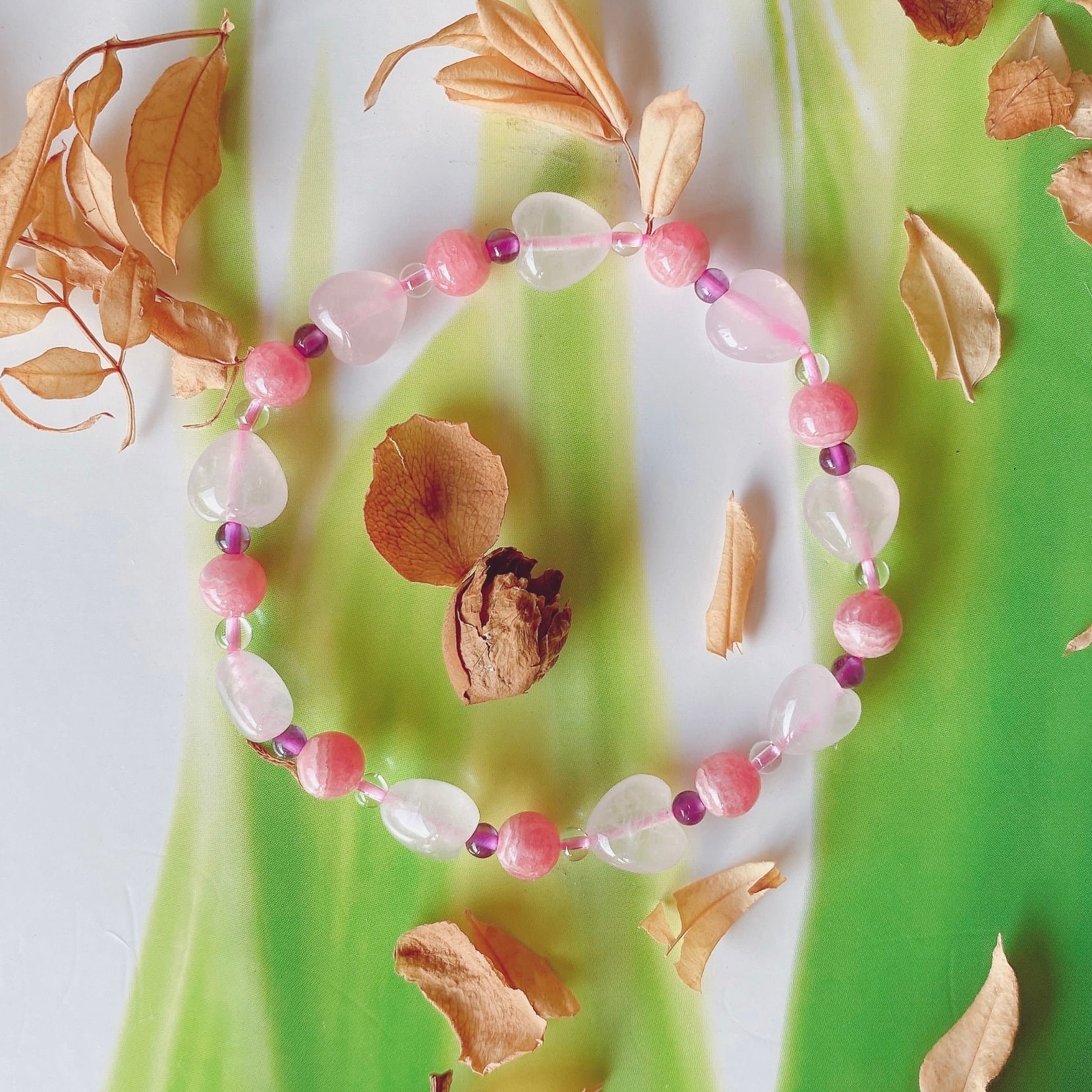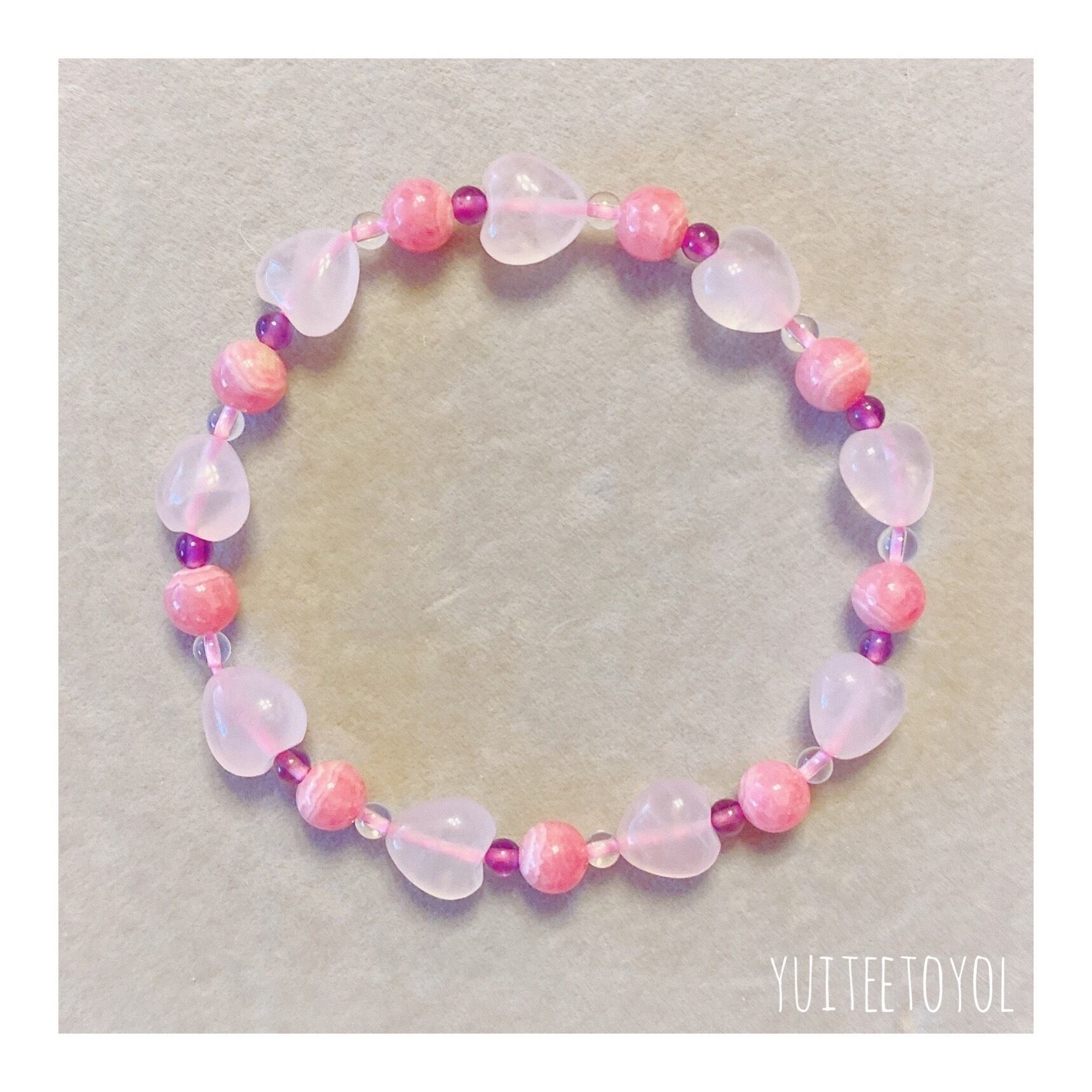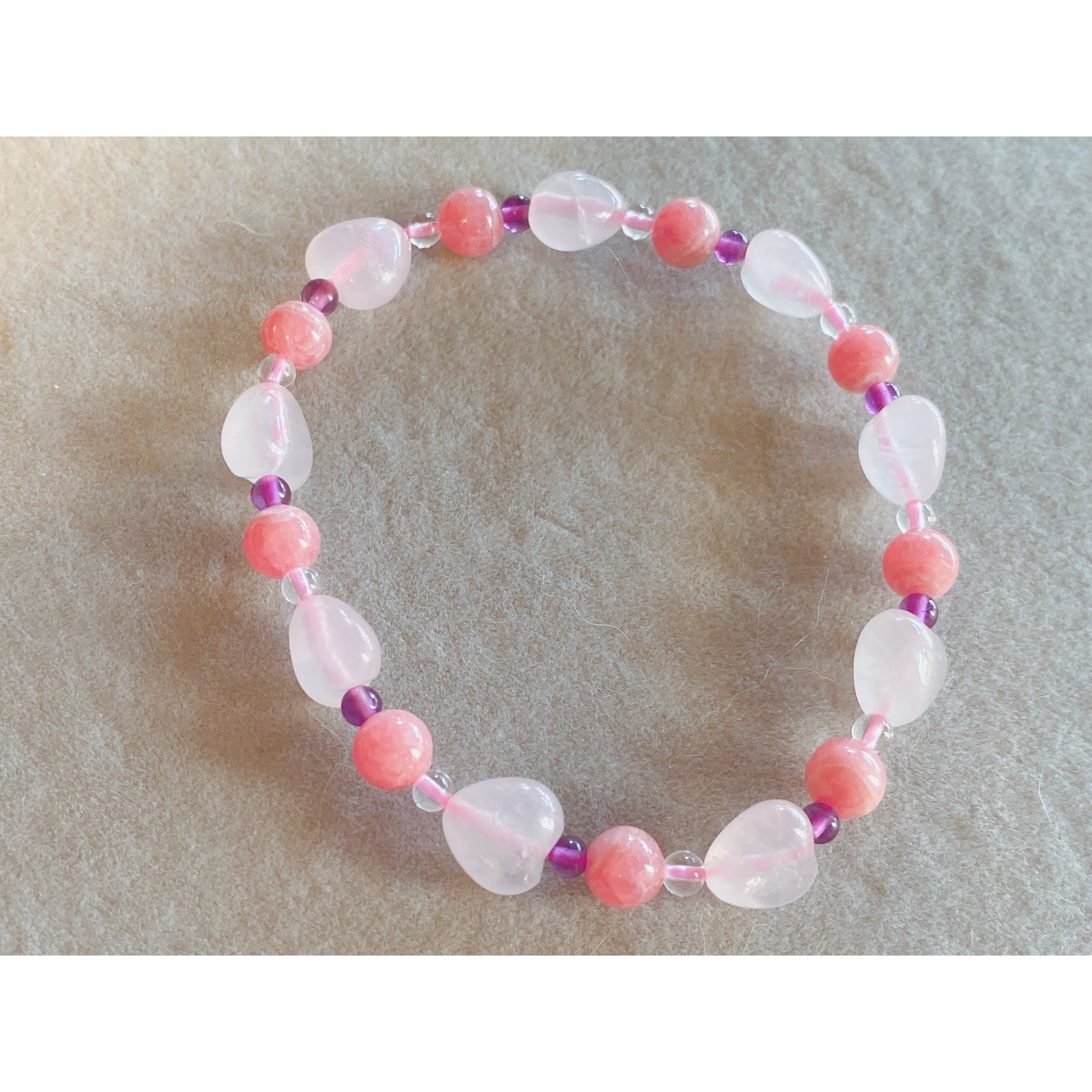 17cm【愛の覚醒】2月4月10月誕生石・ハートローズクォーツ・インカローズ・アメジスト・水晶・天然石・パワーストーン・ヒーリングストーン・ブレスレット・浄化済み
