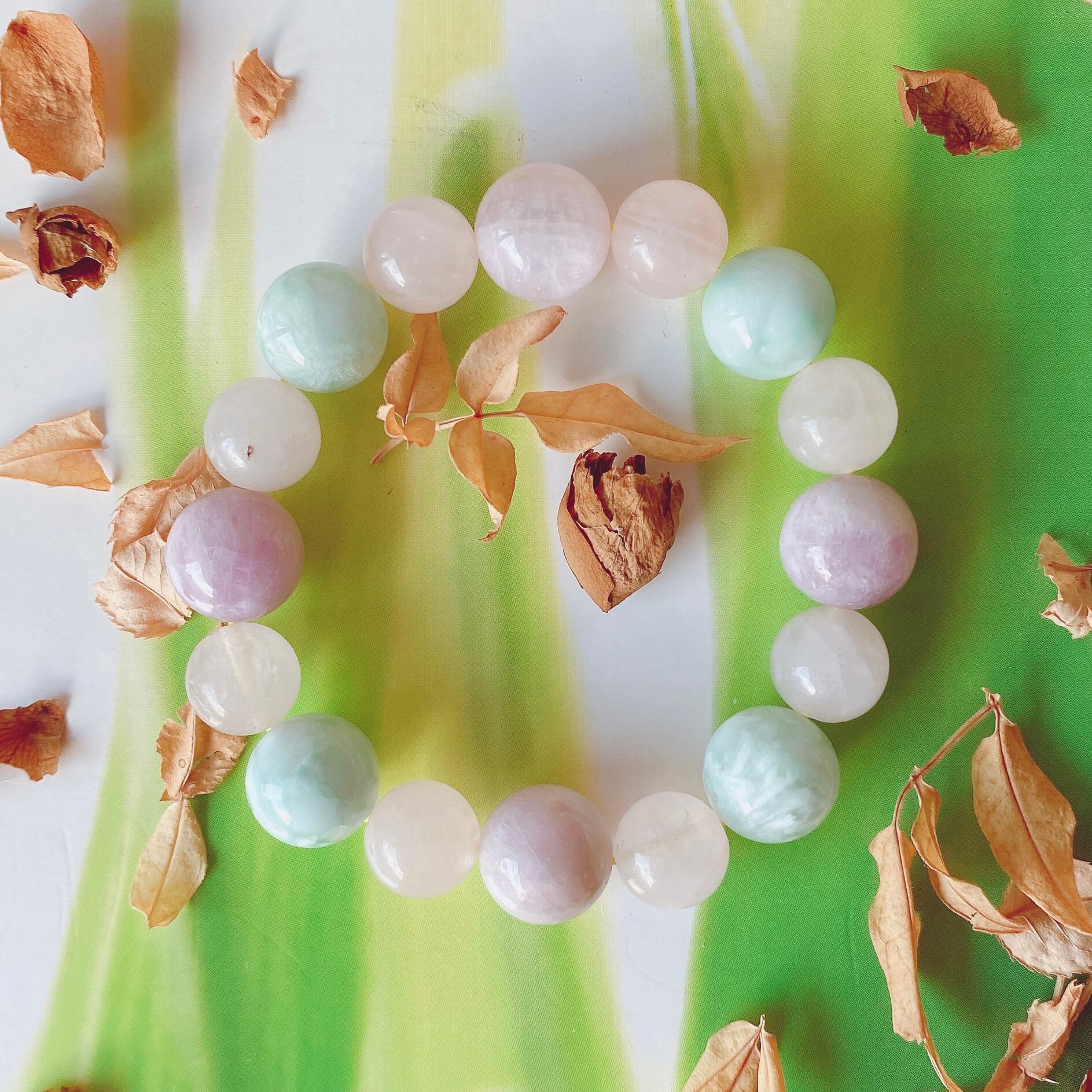 15cm【眠り姫】9月誕生石・10月誕生石・クンツァイト・ローズクォーツ・ペルー産セラフィナイト・天然石・パワーストーン・ヒーリングストーン・ブレスレット・曼荼羅・浄化済み