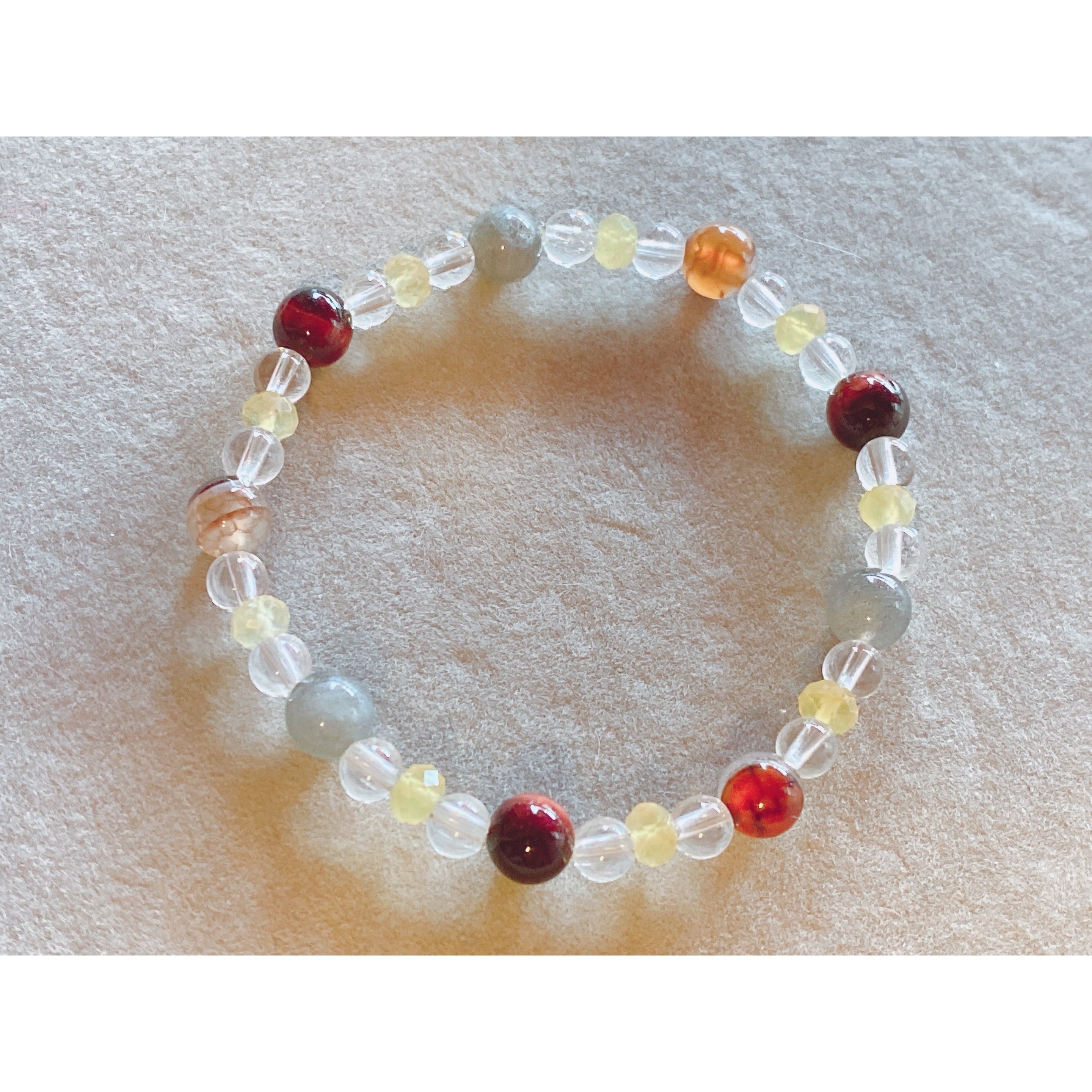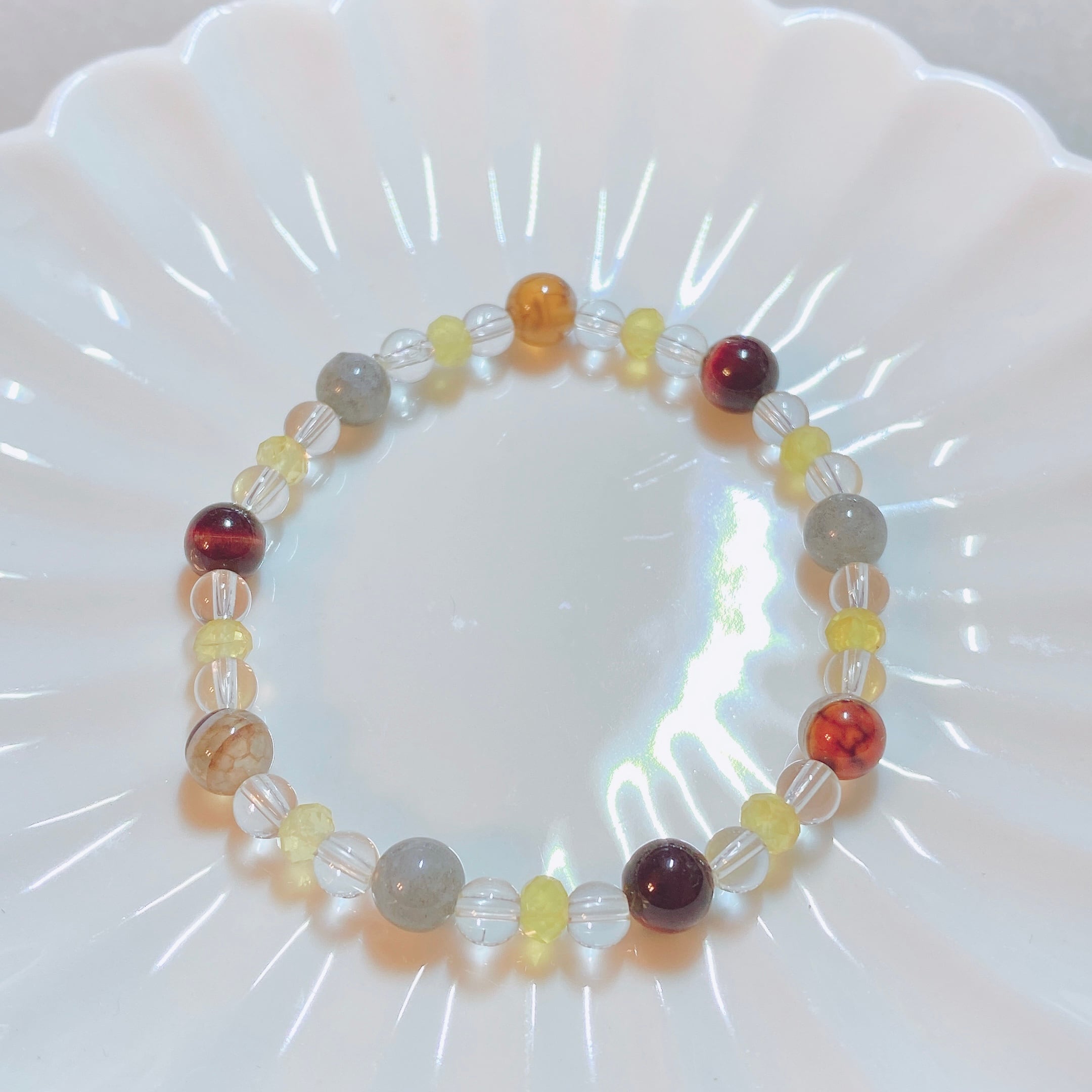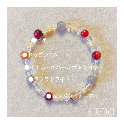 15cm【自由の女神】4月守護石・10月誕生石・ラブラドライト・レッドタイガーアイ・ドラゴンアゲート・水晶・イエローオパール・天然石・パワーストーン・ヒーリングストーン・ブレスレット・曼荼羅・浄化済み