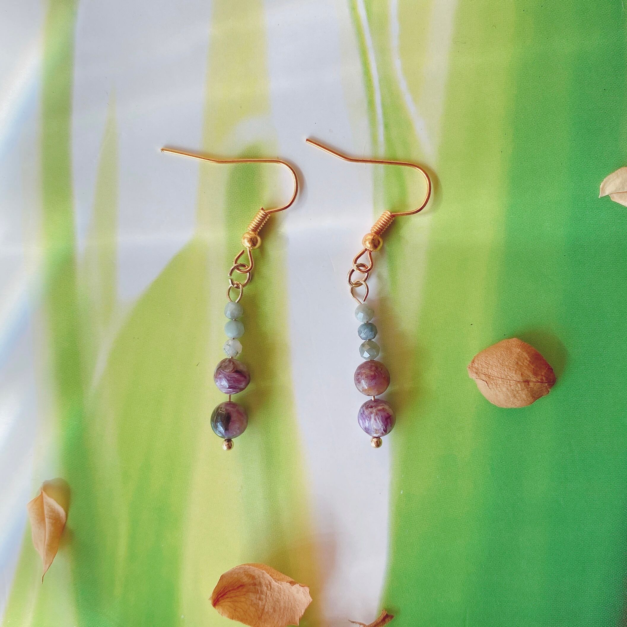 【大人の時間】チャロアイト・イーグルアイ・天然石・パワーストーン・ヒーリングストーン・ピアス・イヤリング・ゴールド・シルバー・浄化済み