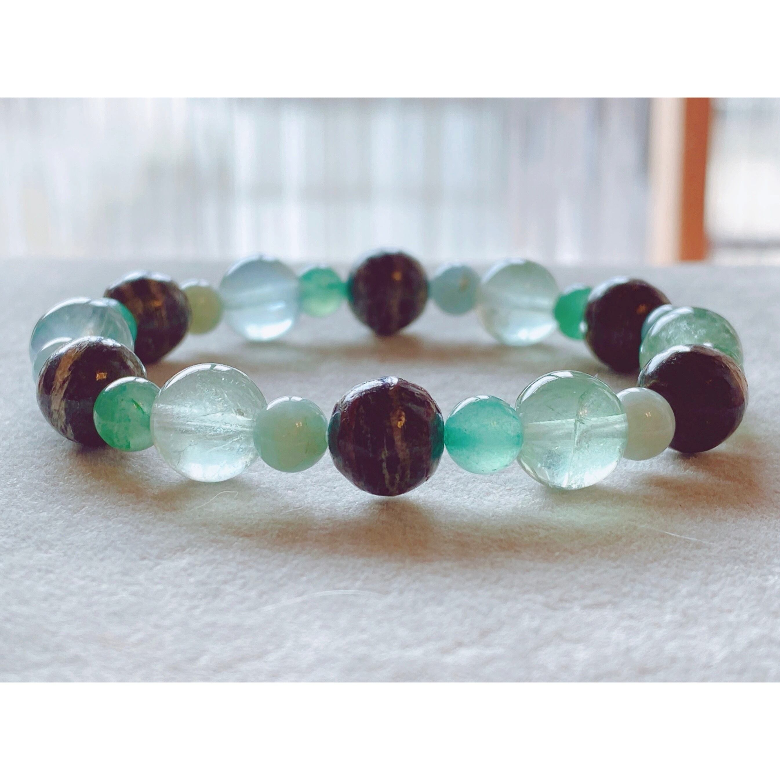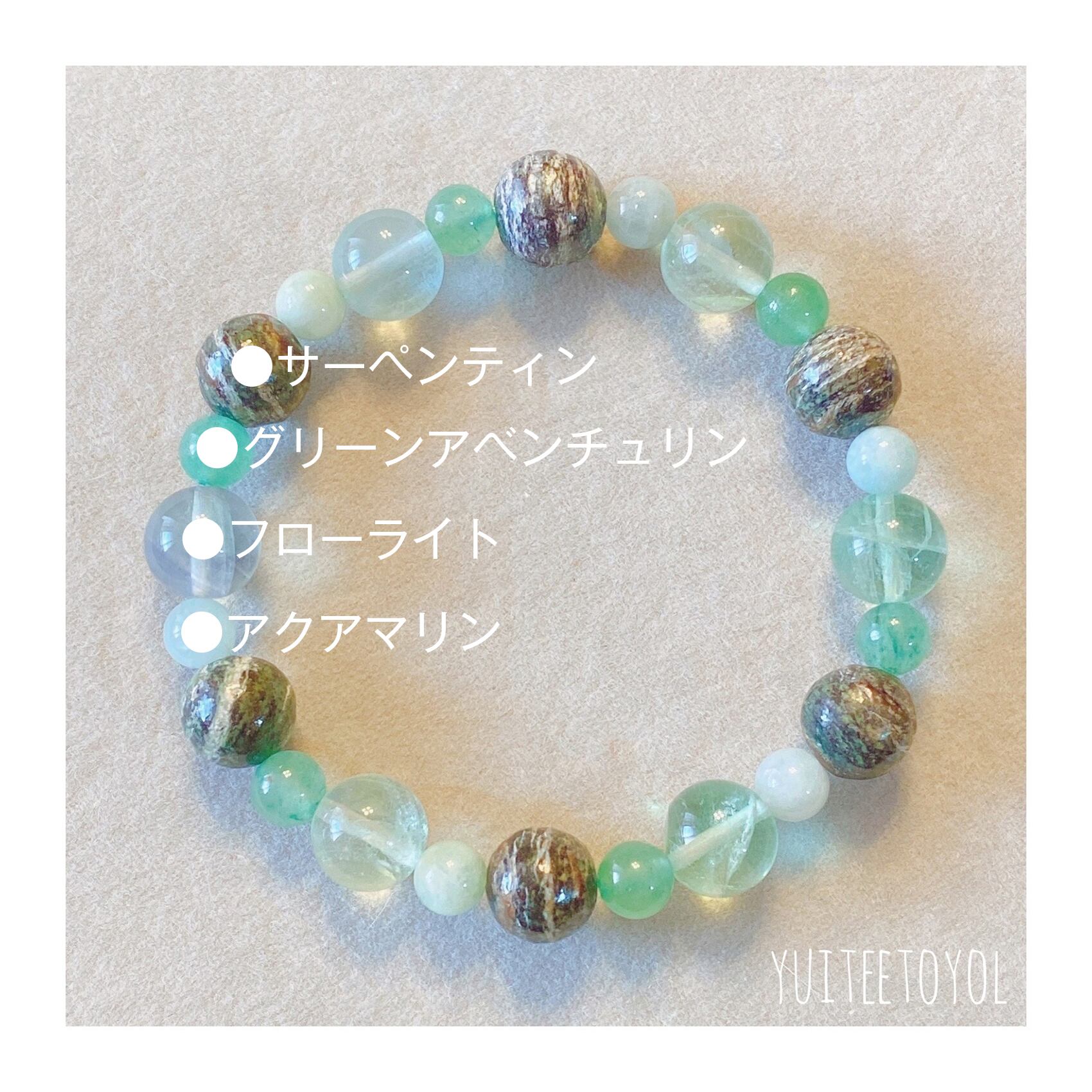 17cm【森林浴】3月誕生石・5月誕生石・アクアマリン・サーペンティン・フローライト・グリーンアベンチュリン・天然石・パワーストーン・ヒーリングストーン・ブレスレット・曼荼羅・浄化済み
