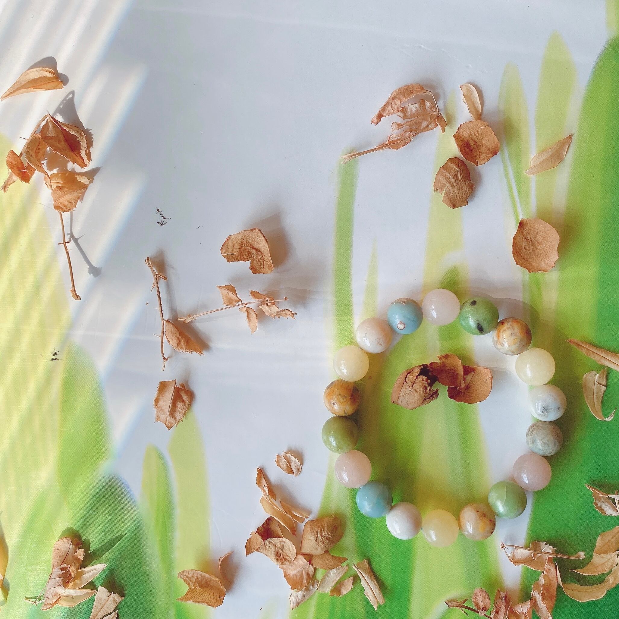 16cm【色鮮やかな人生を✴︎】5月誕生石・10月誕生石・クリソプレーズ・ピンクアベンチュリン・インプレッションストーン・天然石・パワーストーン・ヒーリングストーン・ブレスレット・曼荼羅・浄化済み