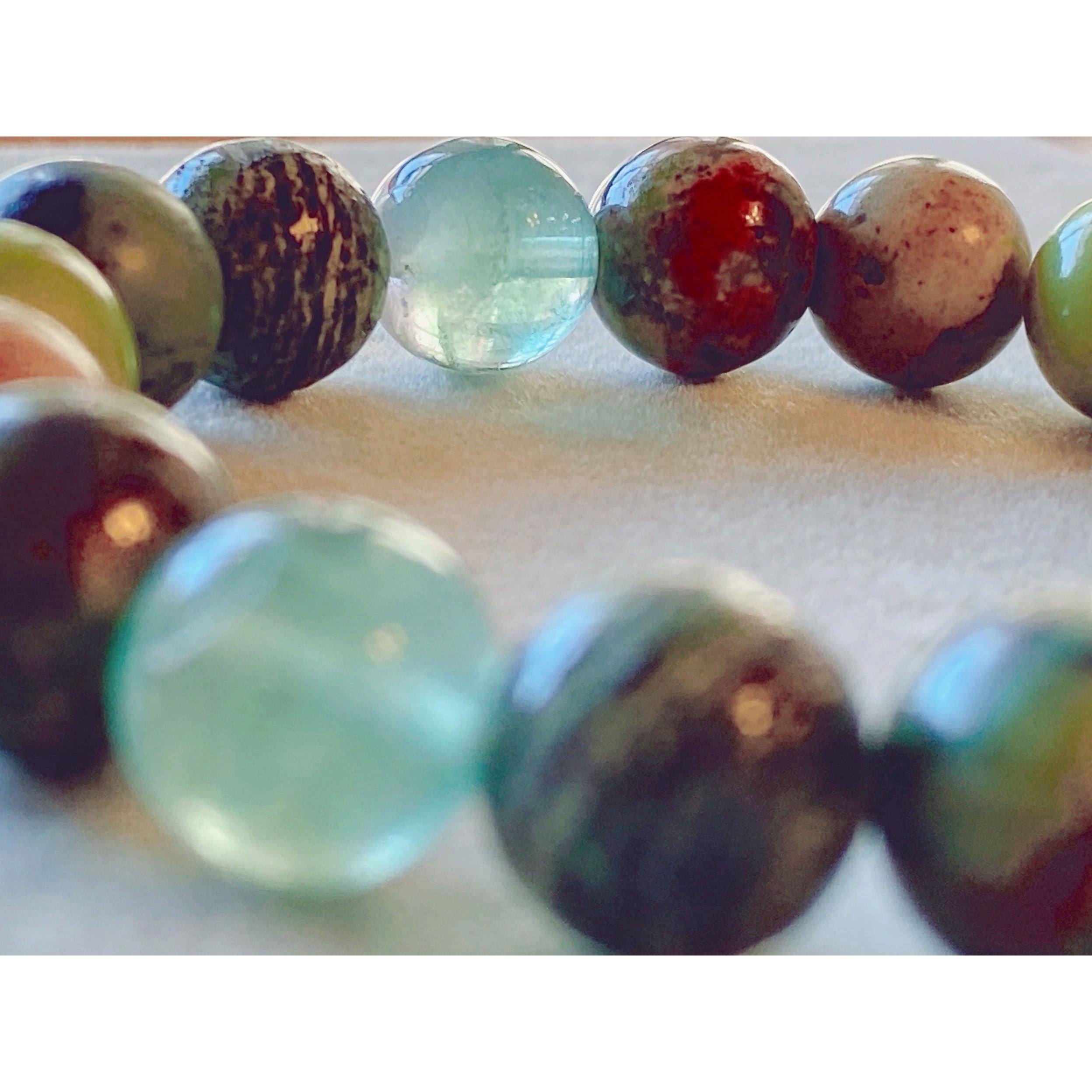 16cm【森羅万象】12月誕生石・クリソプレーズ・アフリカンターコイズ・フローライト・ユナカイト・サーペンティン・インプレッションストーン・天然石・ヒーリングストーン・ブレスレット・曼荼羅・浄化済み