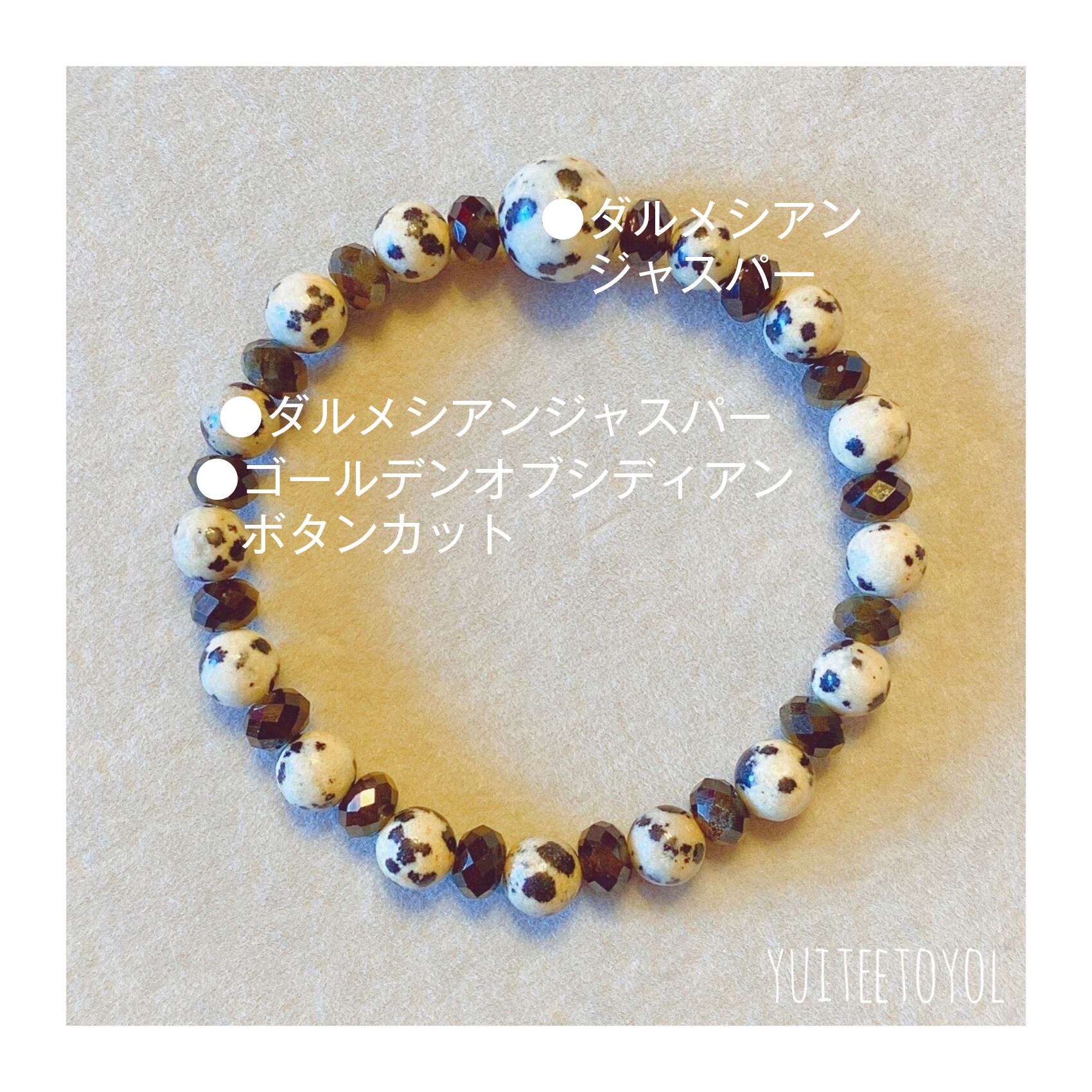 15.5cm【無邪気な守護神】長さ変更可・ダルメシアンジャスパー・ゴールデンオブシディアン・天然石・パワーストーン・ヒーリングストーン・ブレスレット・曼荼羅・浄化済み