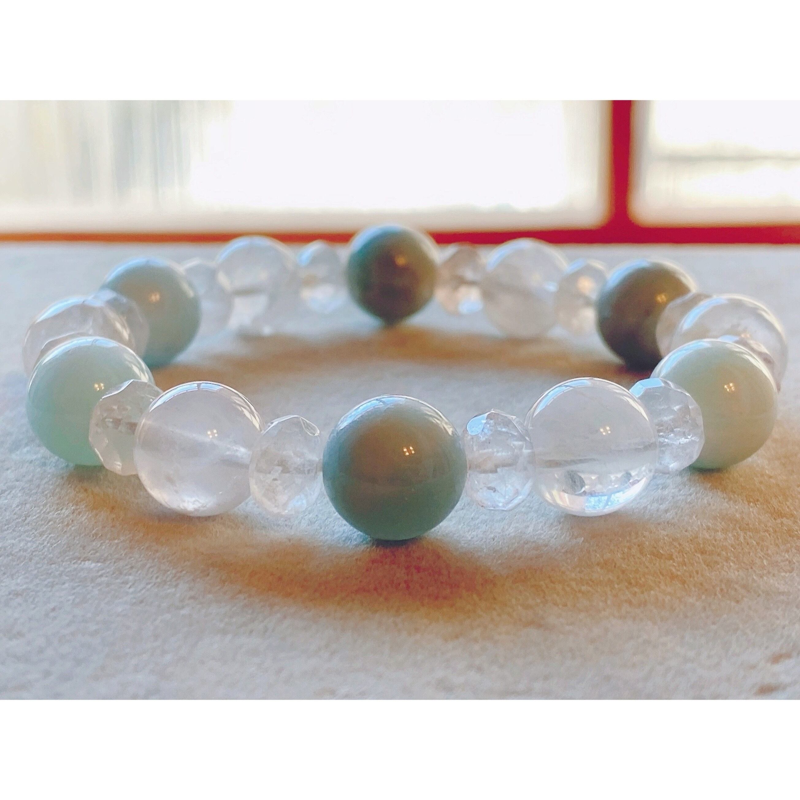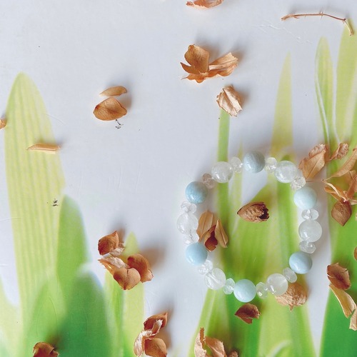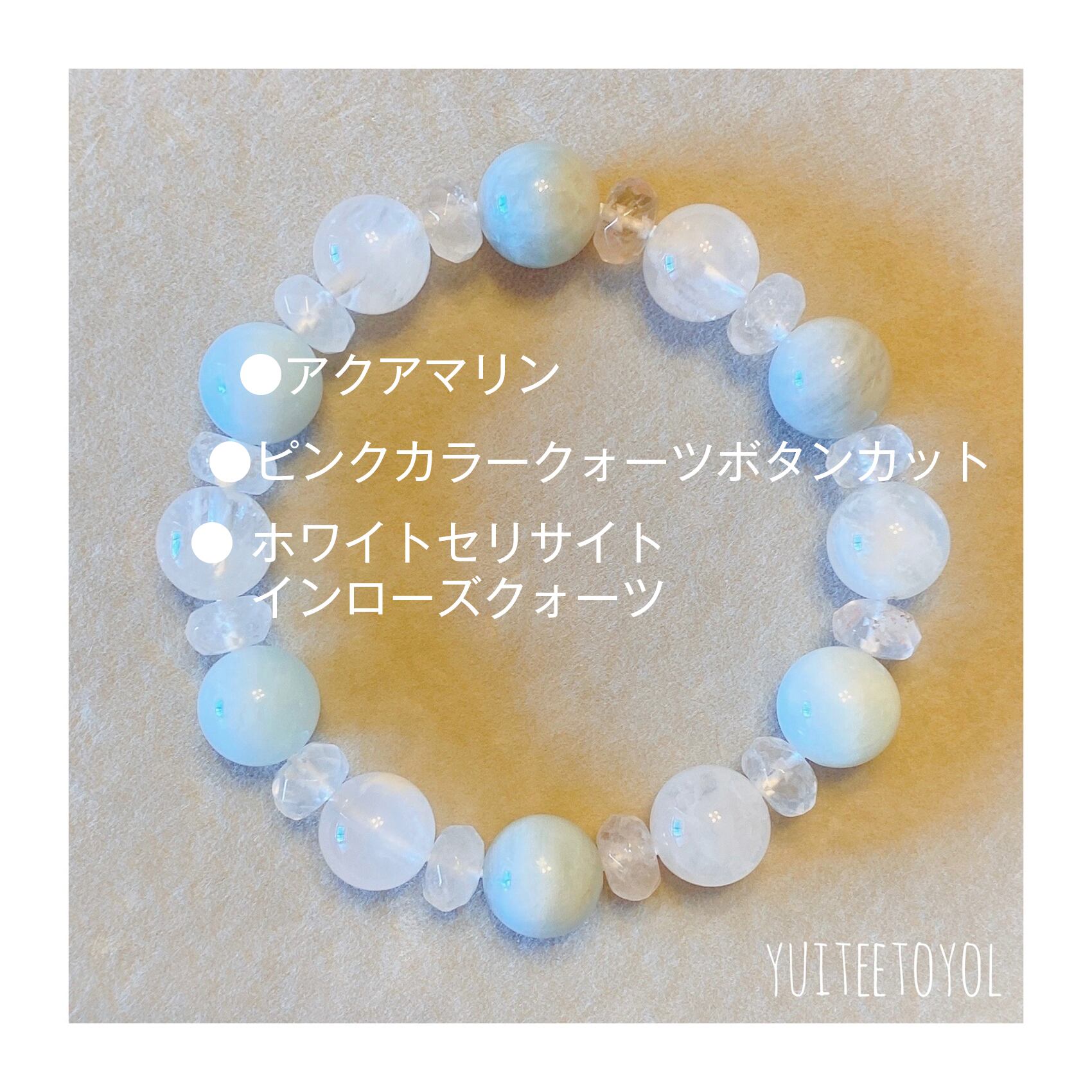 16cm【天使の導き】3月誕生石・4月誕生石・アクアマリン・ホワイトセリサイトインローズクォーツ・ピンクカラークォーツ・天然石・パワーストーン・ヒーリングストーン・浄化済み