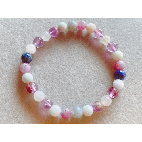 16.5cm【てんかん発作を抑えてくれるストーン】ガーデンアメジスト・ラピスラズリ・ラブラドライト・レピドライト・ムーンストーン・天然石・パワーストーン・ヒーリングストーン・ブレスレット・浄化済み