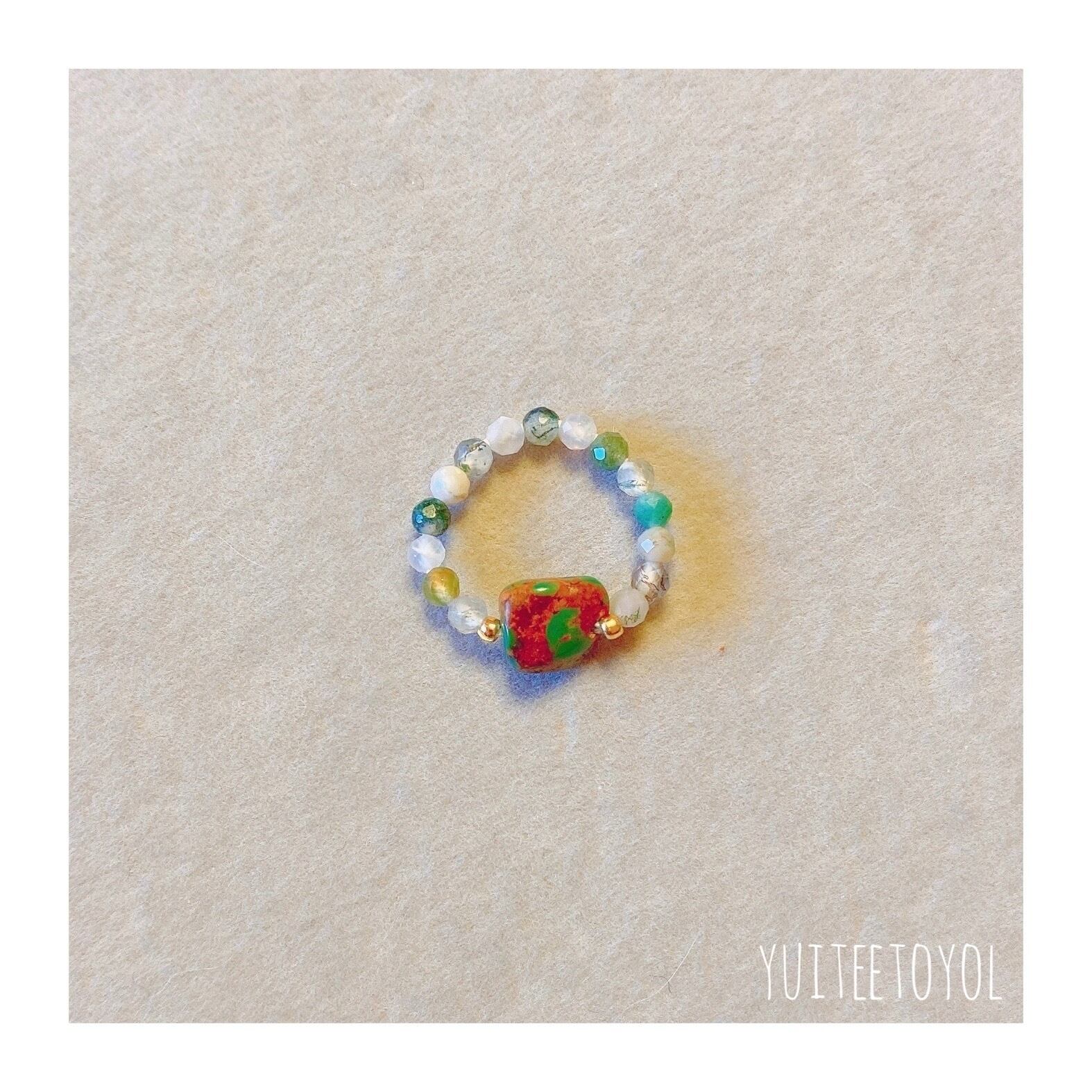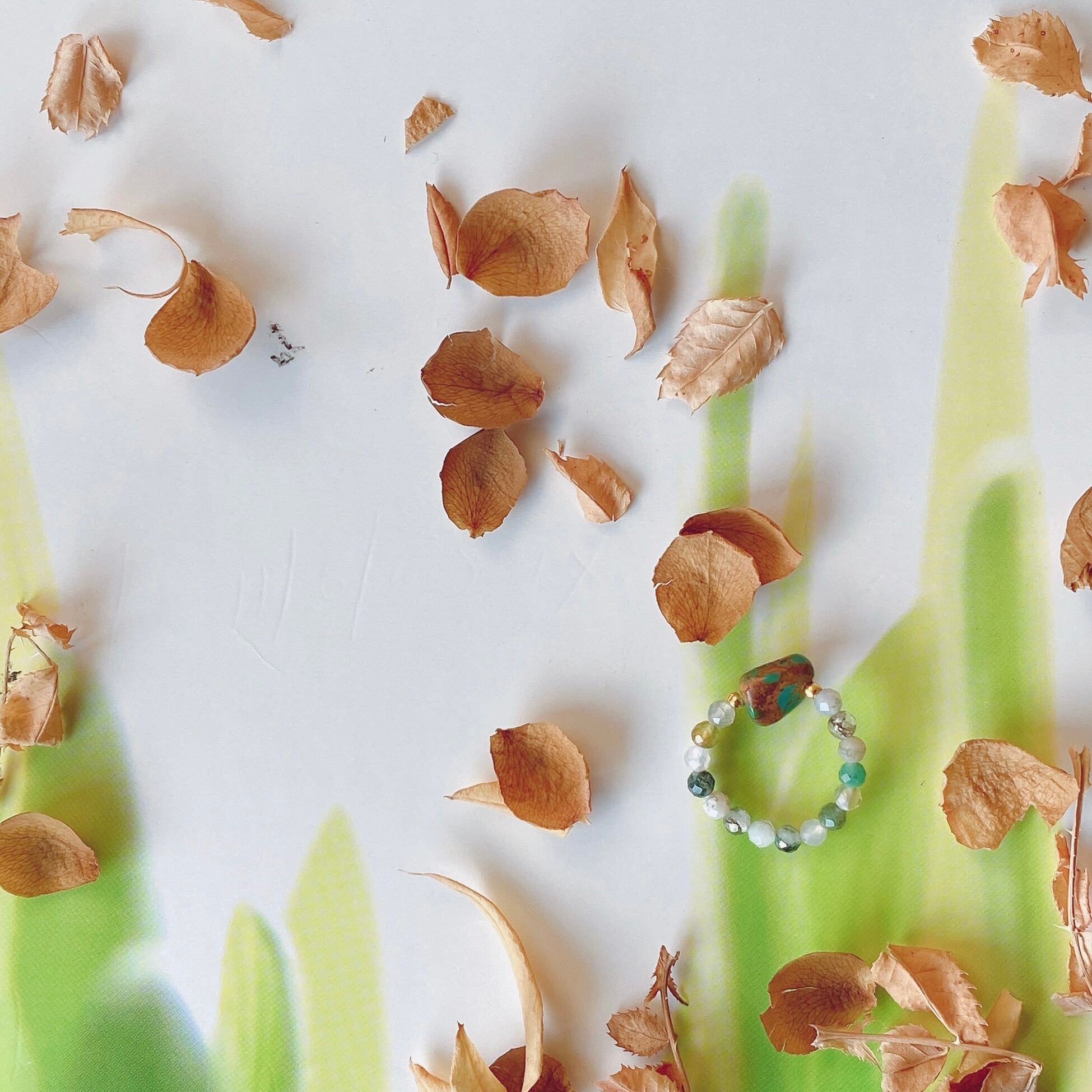 伸び縮みするゴム紐と小粒の天然石を使用しておりますので指にするっと馴染みます。