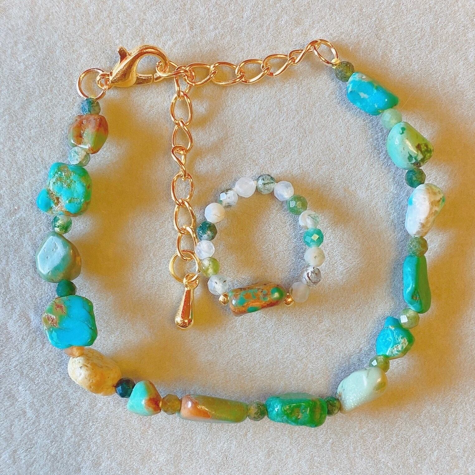 【ヒーリング】サイズ変更OK・12月誕生石・ターコイズ・モスアゲート・天然石・ヒーリングストーン・指輪・リング・浄化済み