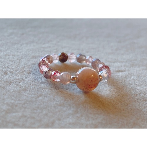 【光と闇】サイズ変更OK・6月誕生石・ムーンストーン・ストロベリークォーツ・モスアゲート・天然石・パワーストーン・ヒーリングストーン・指輪・リング・浄化済み