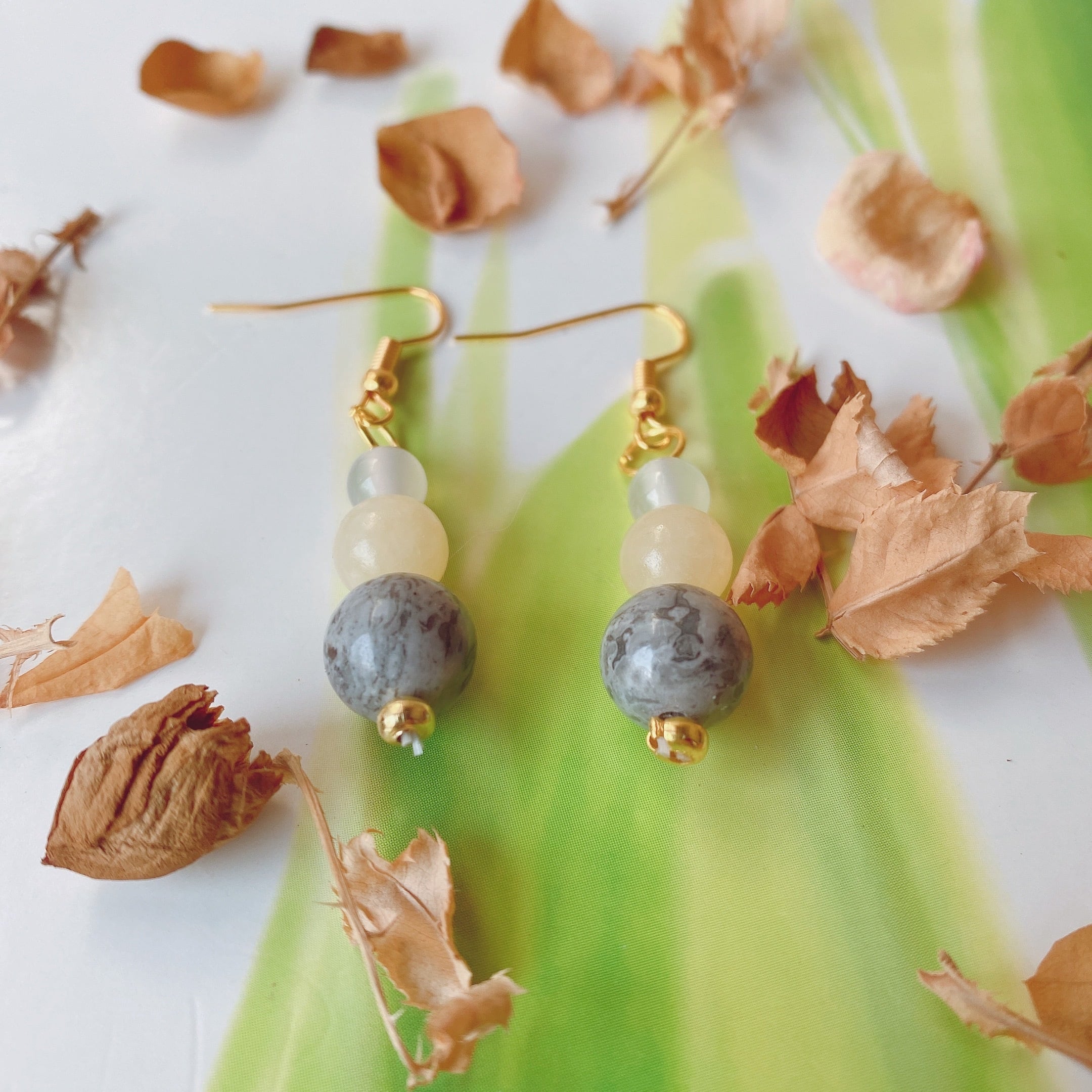 【New Beginning】フォーティフィケーションアゲート・アラゴナイト・モンタナモスアゲート・天然石・パワーストーン・ヒーリングストーン・ピアス・イヤリング・ゴールド・シルバー・浄化済み