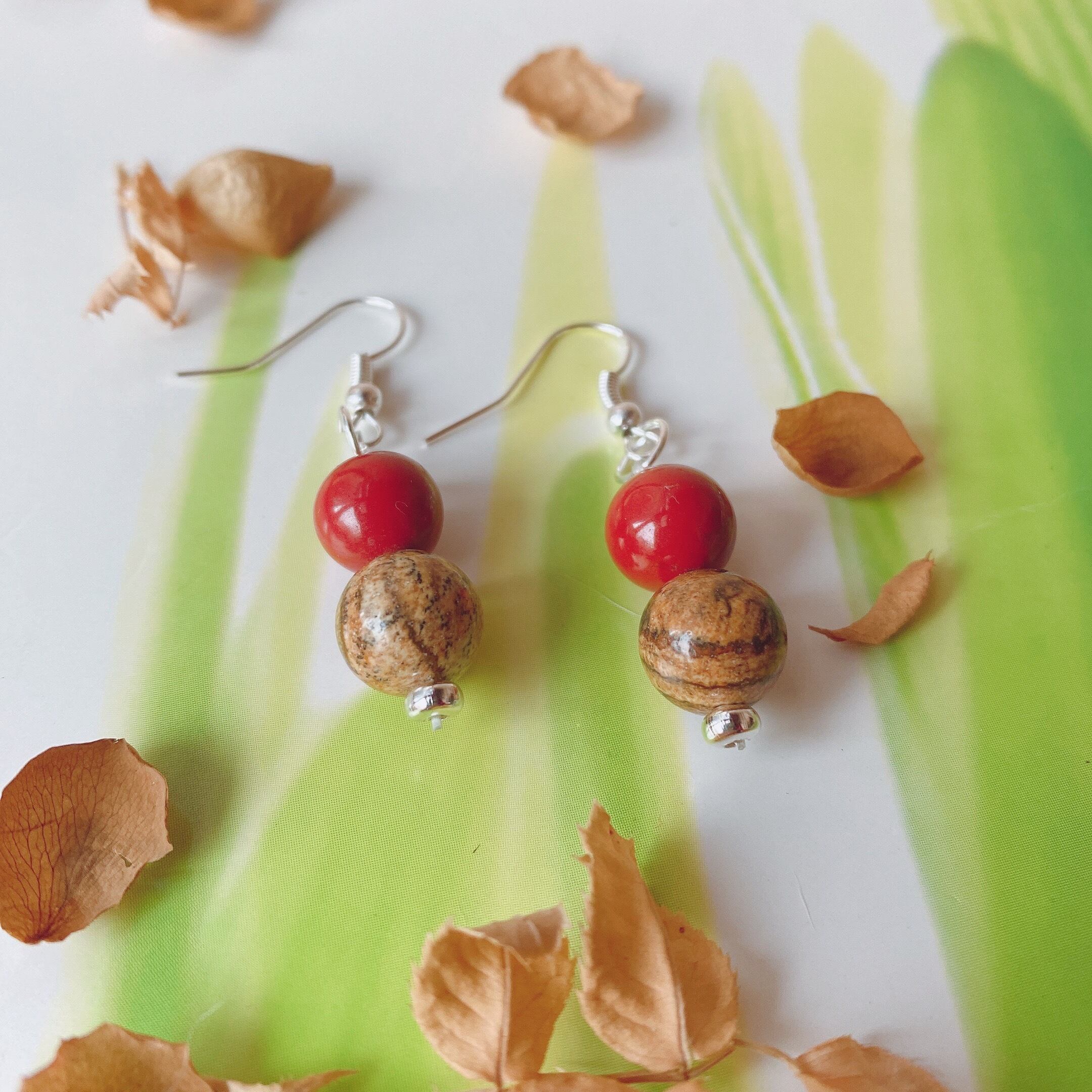 【パッション!】レッドジャスパー・ペトリファイドウッド・天然石・パワーストーン・ヒーリングストーン・ピアス・イヤリング・ゴールド・シルバー・浄化済み