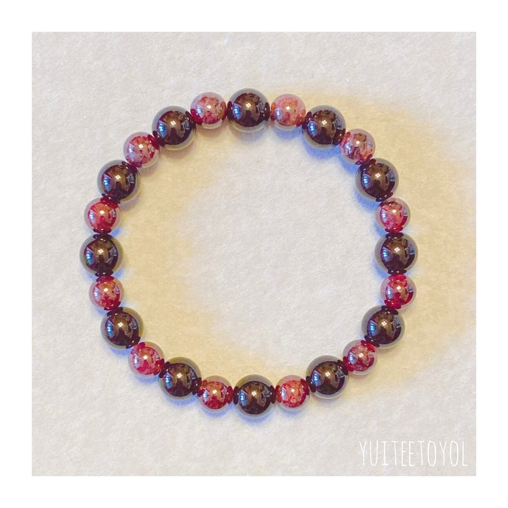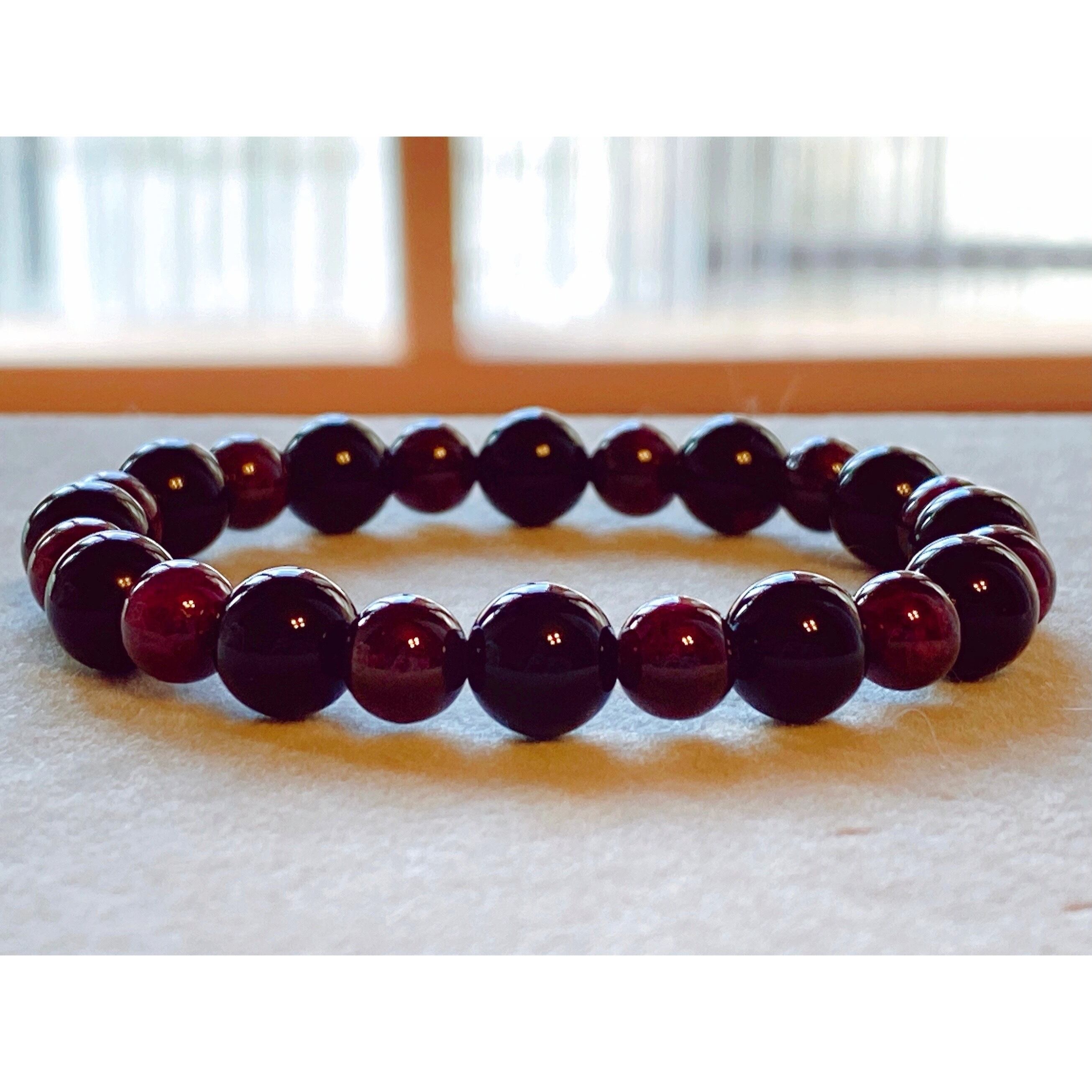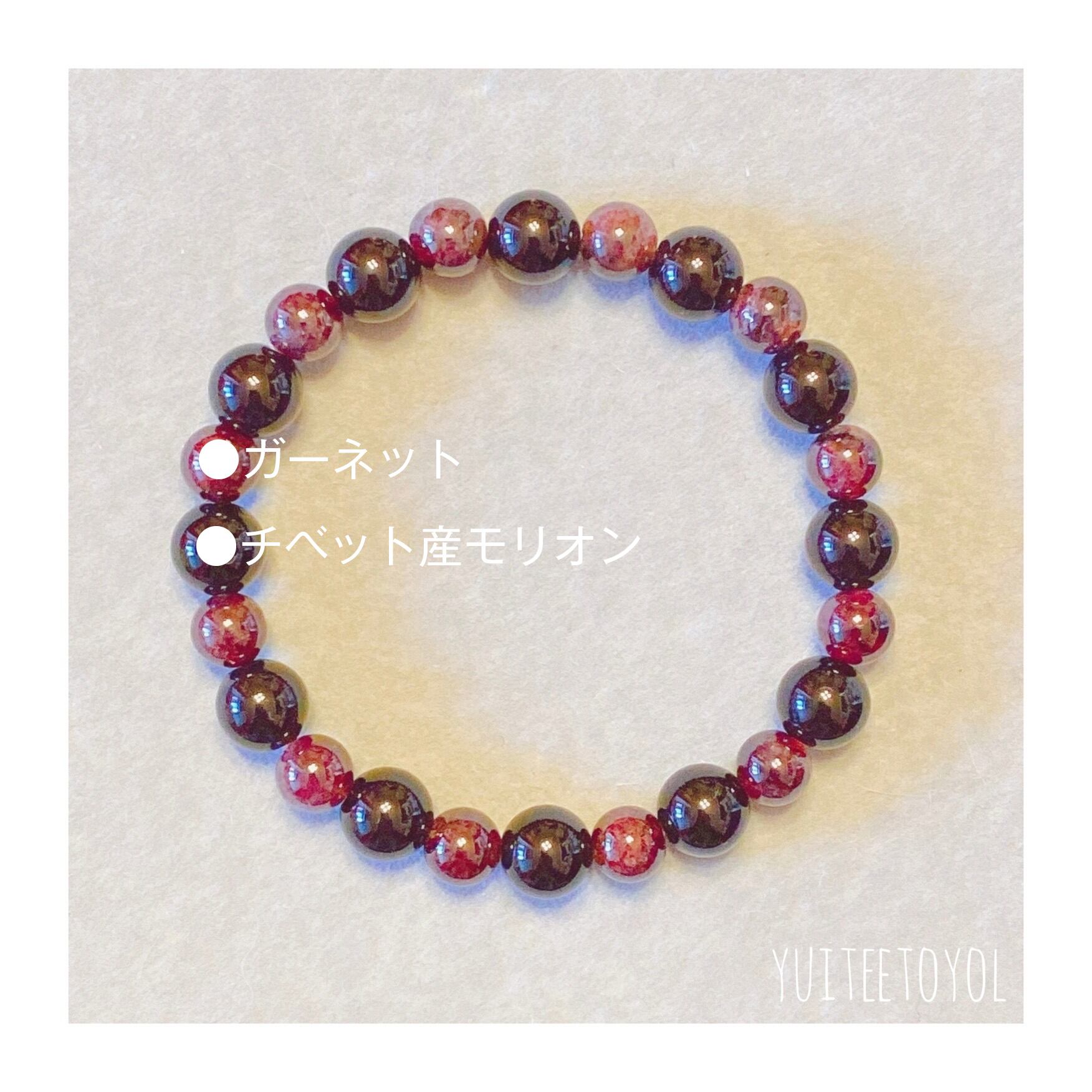 16cm【プロテクション】長さ変更可・1月誕生石・ガーネット・チベット産モリオン・天然石・パワーストーン・ヒーリングストーン・ブレスレット・曼荼羅・浄化済み