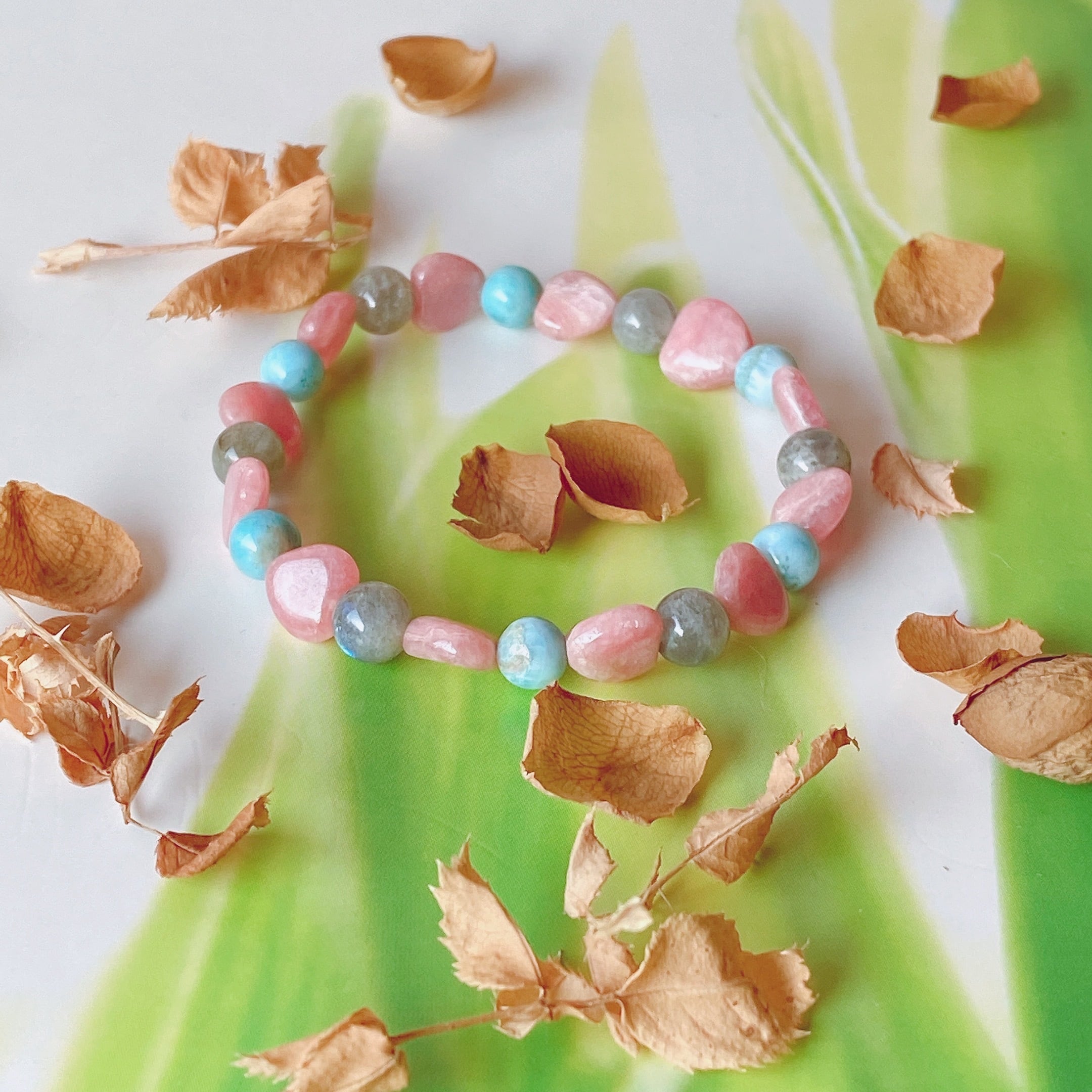 15cm【高次の導きによって気付かされる無償の愛】愛の石・ラリマー・インカローズ・ラブラドライト・天然石・パワーストーン・ブレスレット・曼荼羅・浄化済み