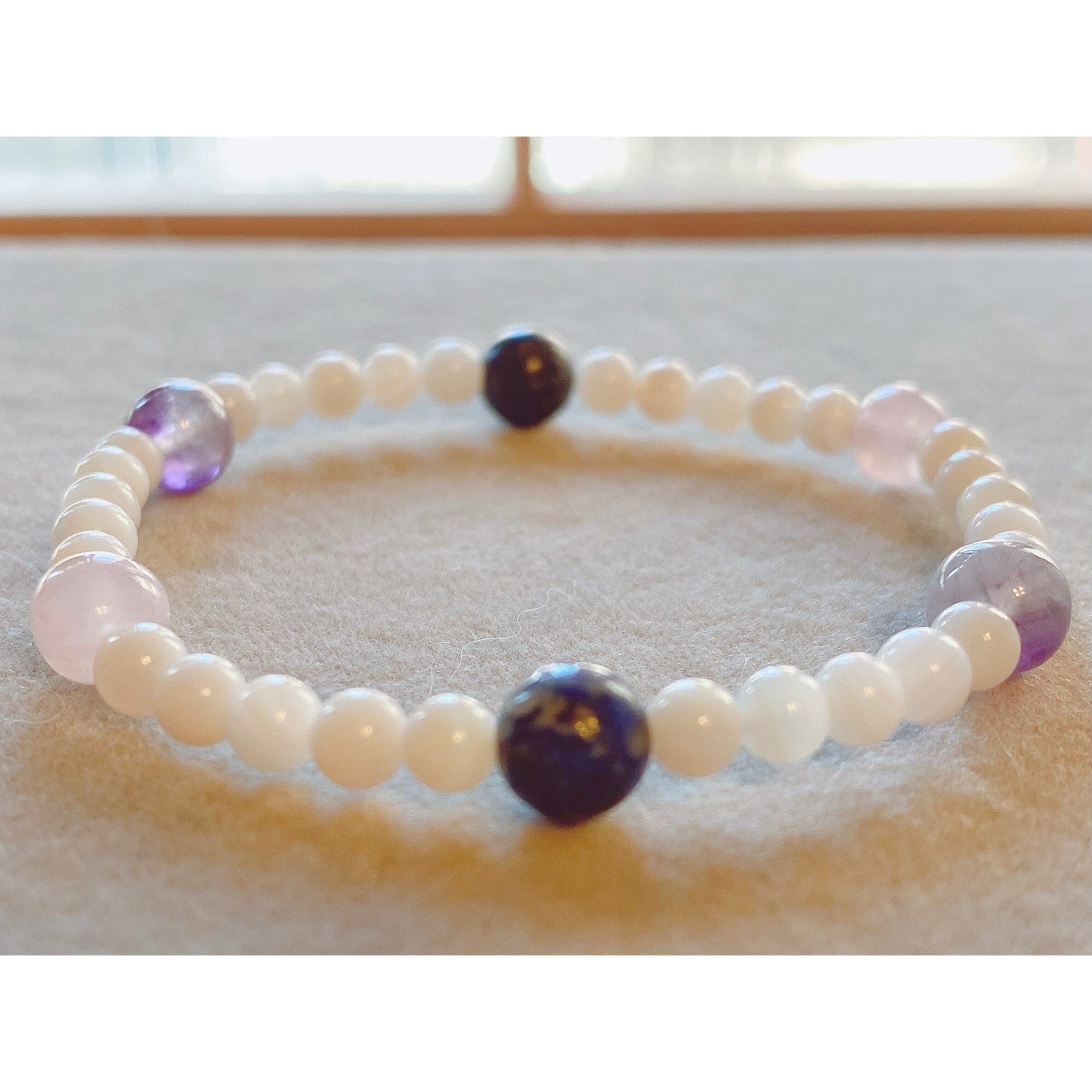 14cm【間違った自分を取り除き本来の自分の道へ】ローズクォーツ・ケープアメジスト・ラピスラズリ・マザーオブパール・天然石・パワーストーン・ヒーリングストーン・ブレスレット・曼荼羅・浄化済み